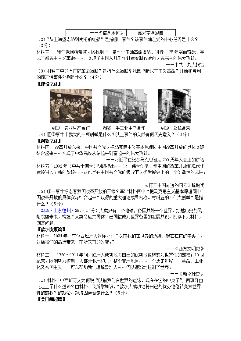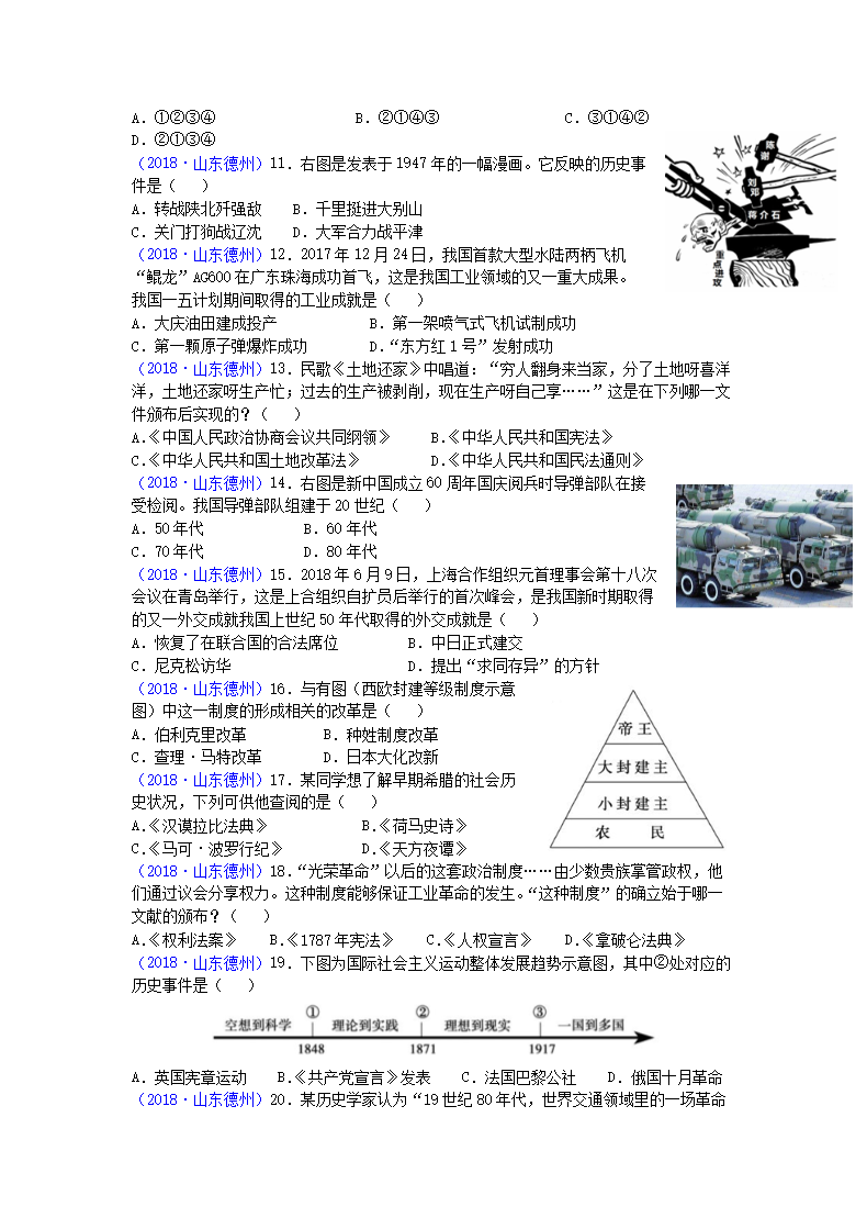 【文档名称】 2018山东省德州市中考历史真题及答案(Word版).doc