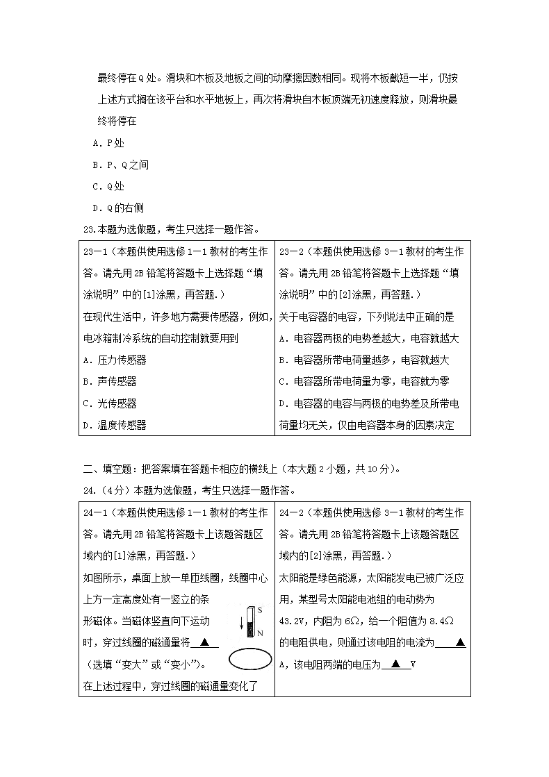 【文档名称】 2007年江苏普通高中会考物理真题及答案(Word版).doc