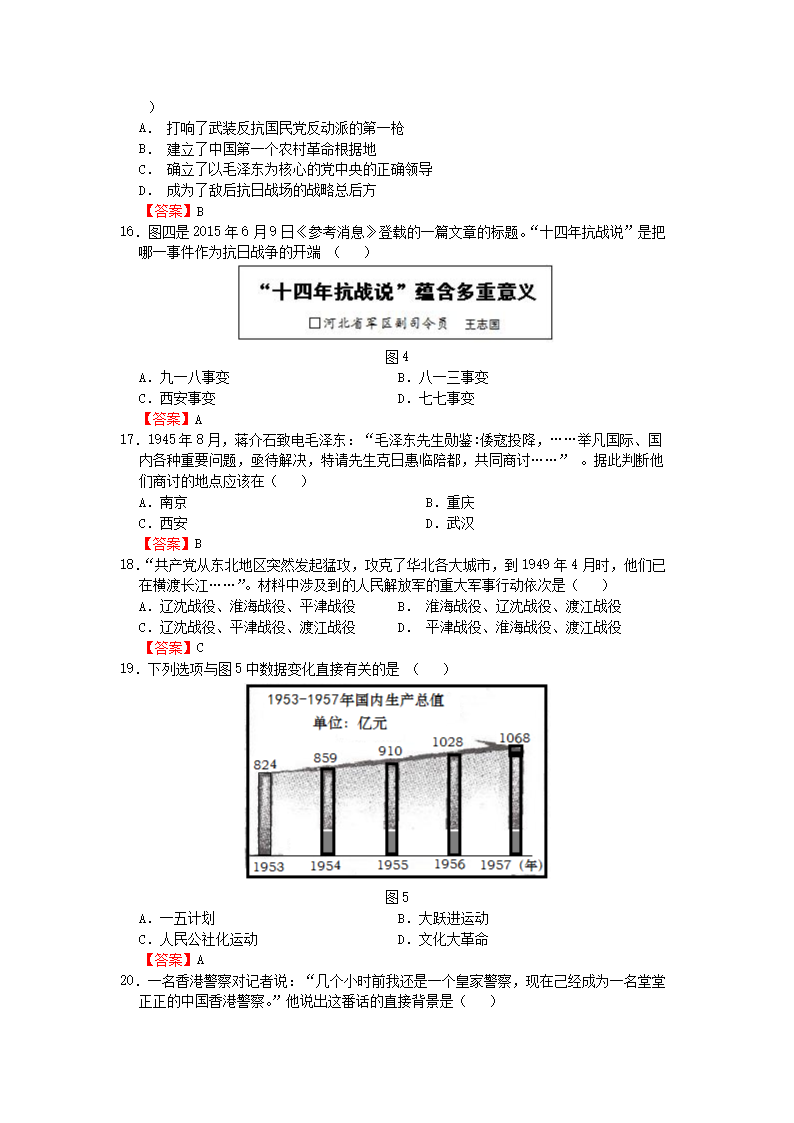 【文档名称】 2015年广东省深圳市中考历史真题及答案(Word版).doc
