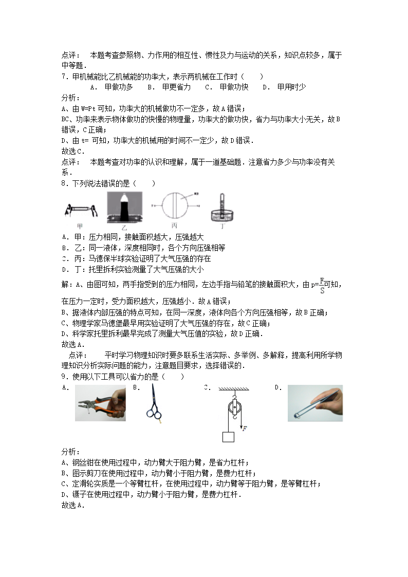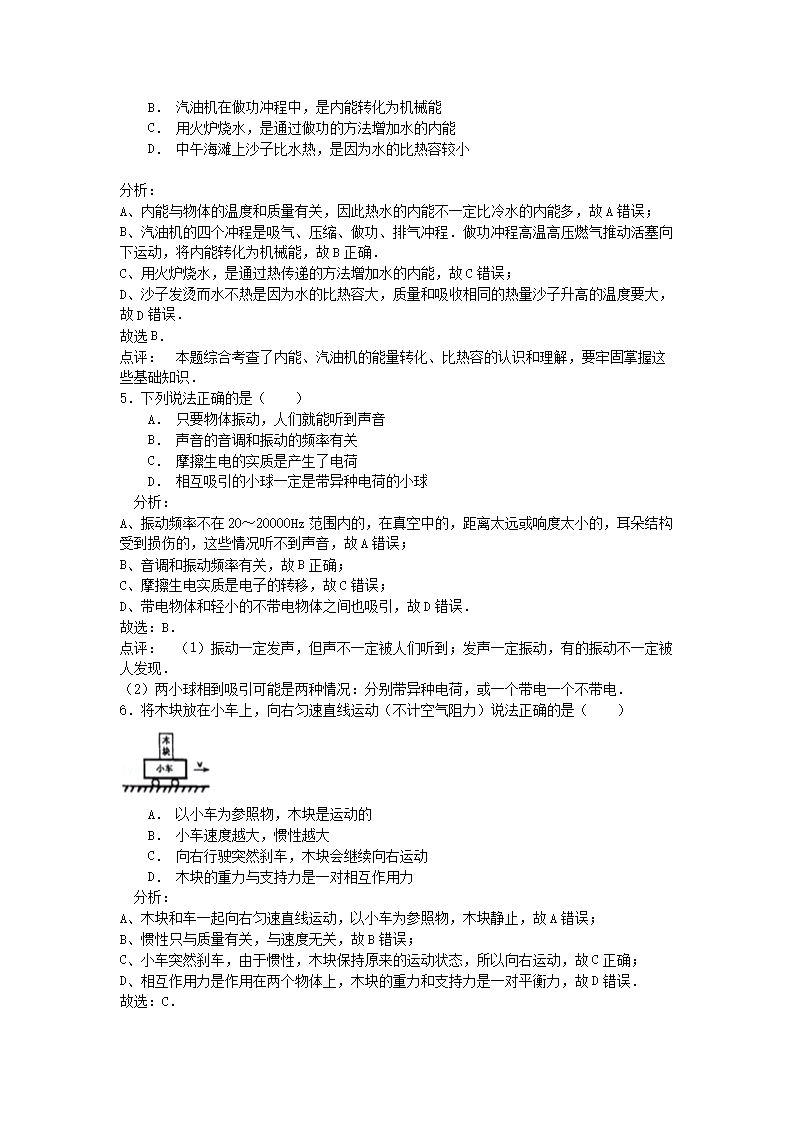 【文档名称】 2015年广东省深圳市中考物理真题及答案(Word版).doc