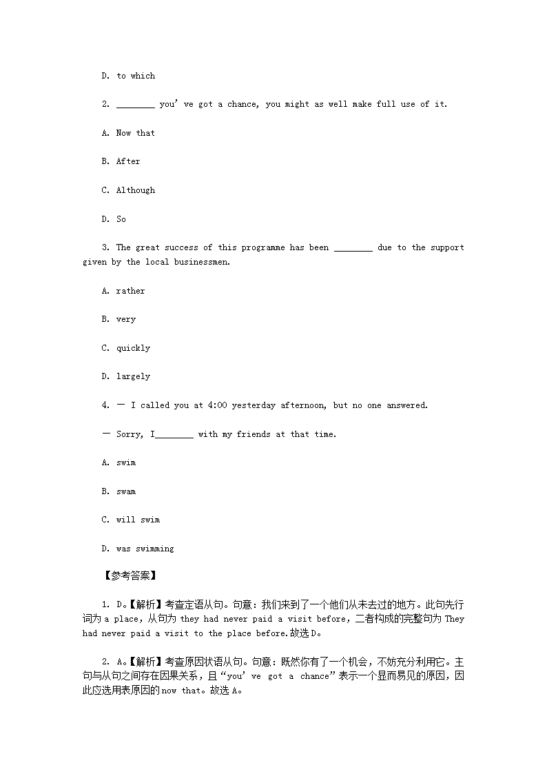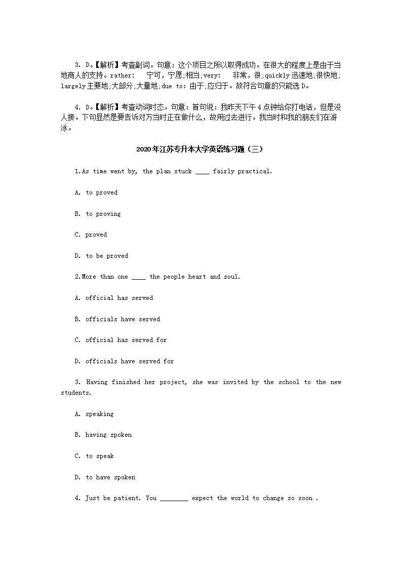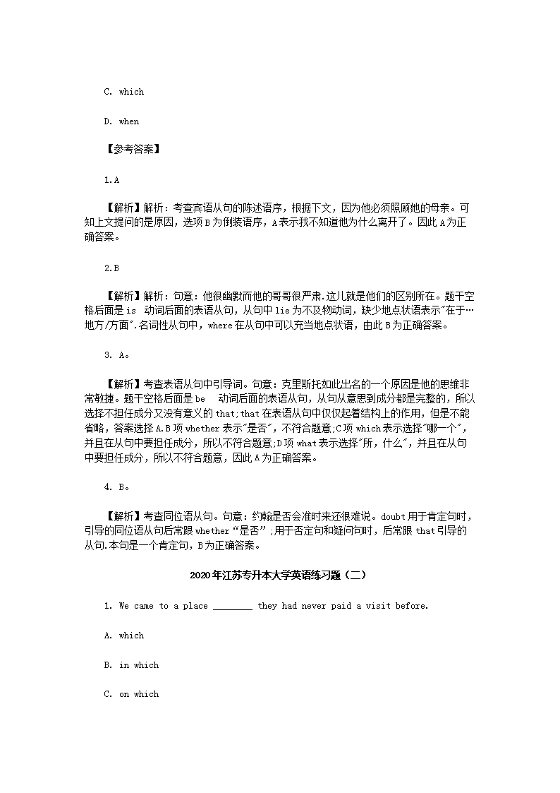【文档预览】 无忧考网整理发布2020年江苏专升本大学英语练习题三套(Word版),前五页预览如下: