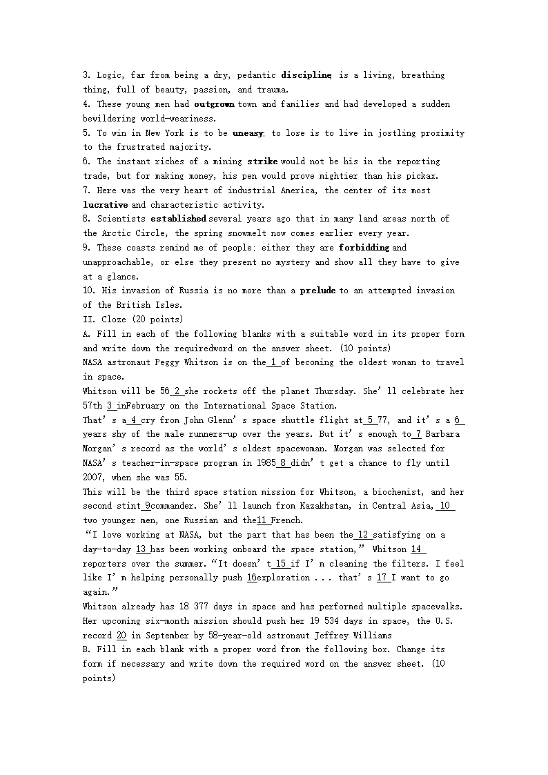 【文档预览】 无忧考网整理发布2017江苏南京航空航天大学基础英语考研真题(Word版),前五页预览如下: