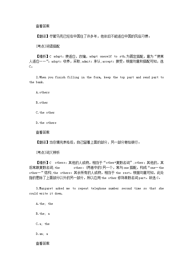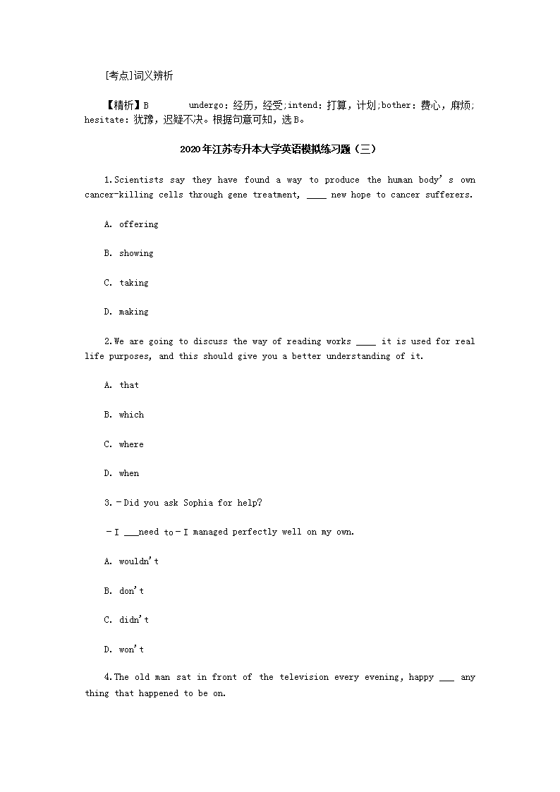 【文档预览】 无忧考网整理发布2020年江苏专升本大学英语模拟练习题三套(Word版),前五页预览如下:
