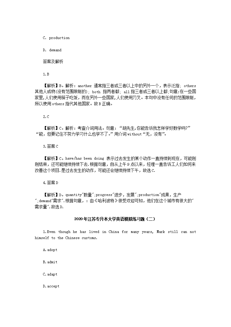 【文档名称】 2020年江苏专升本大学英语模拟练习题三套(Word版).doc