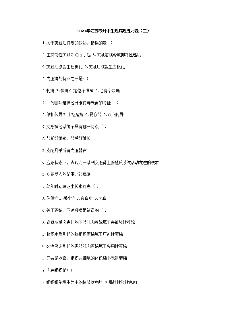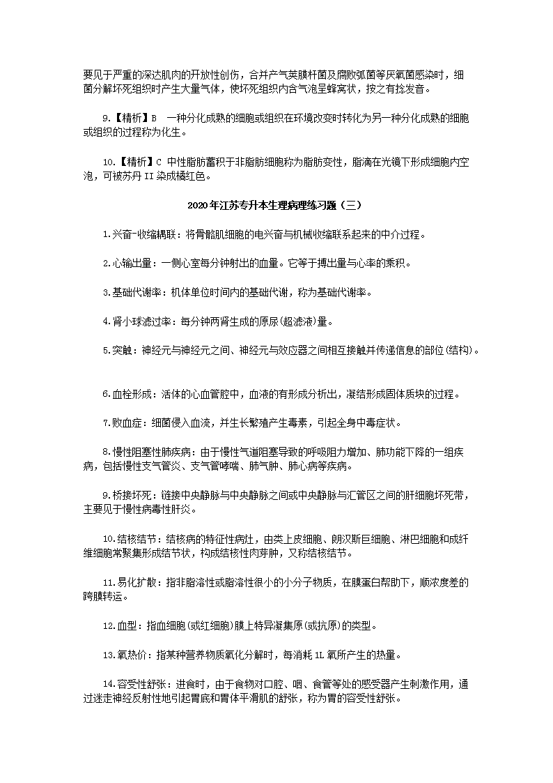 【文档名称】 2020年江苏专升本生理病理练习题三套(Word版).doc