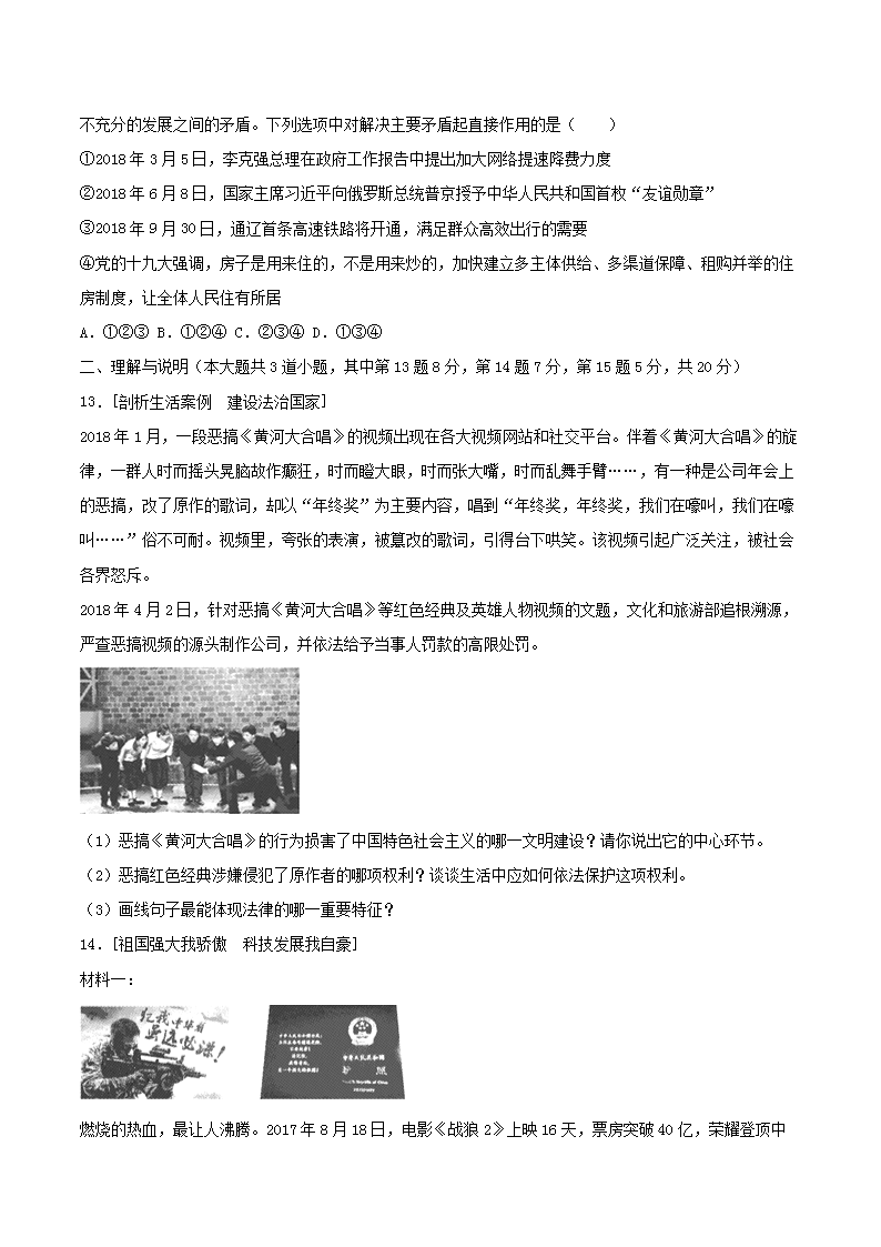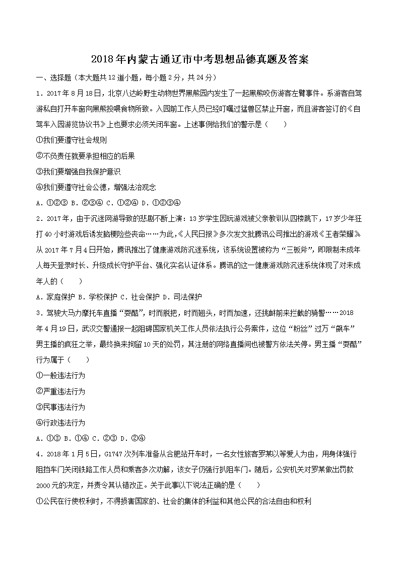 【文档名称】 2018年内蒙古通辽市中考思想品德真题及答案(Word版).doc