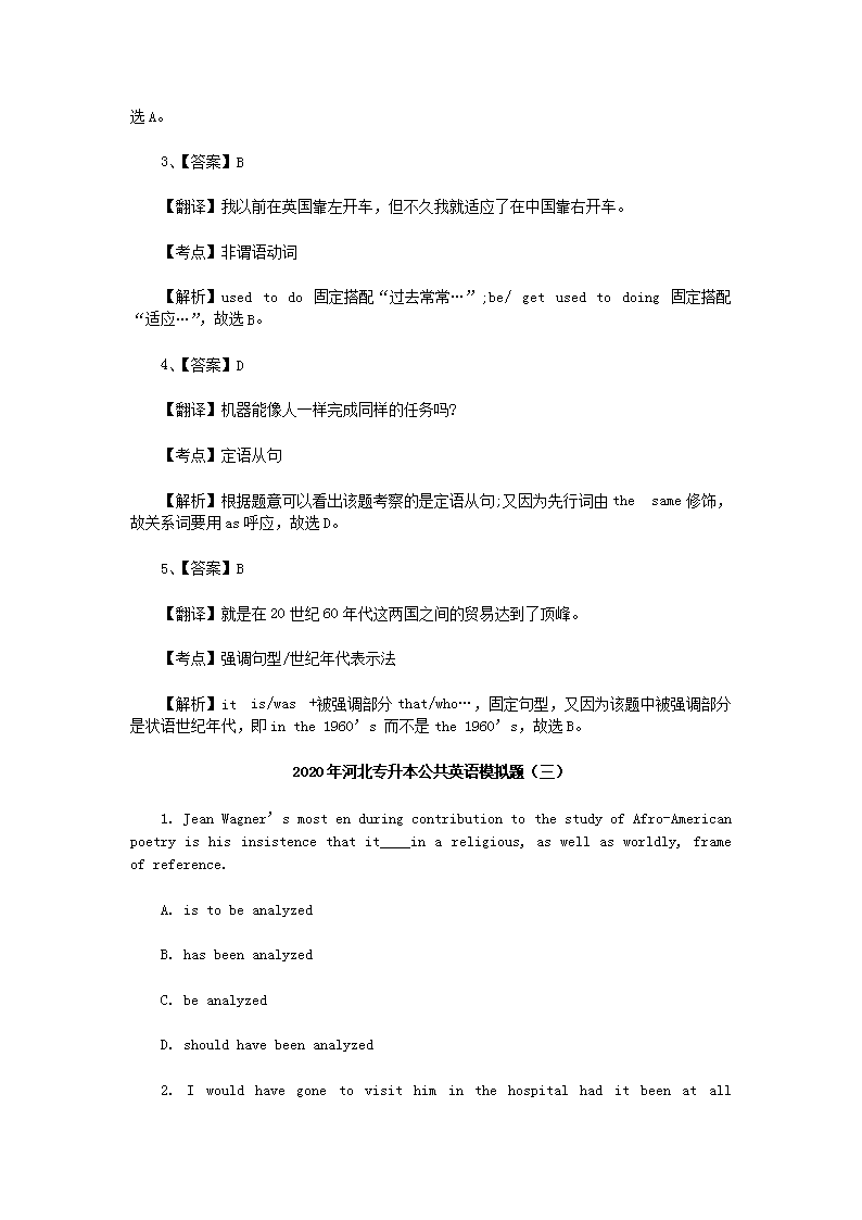 【文档名称】 2020年河北专升本公共英语模拟题三套(Word版).doc