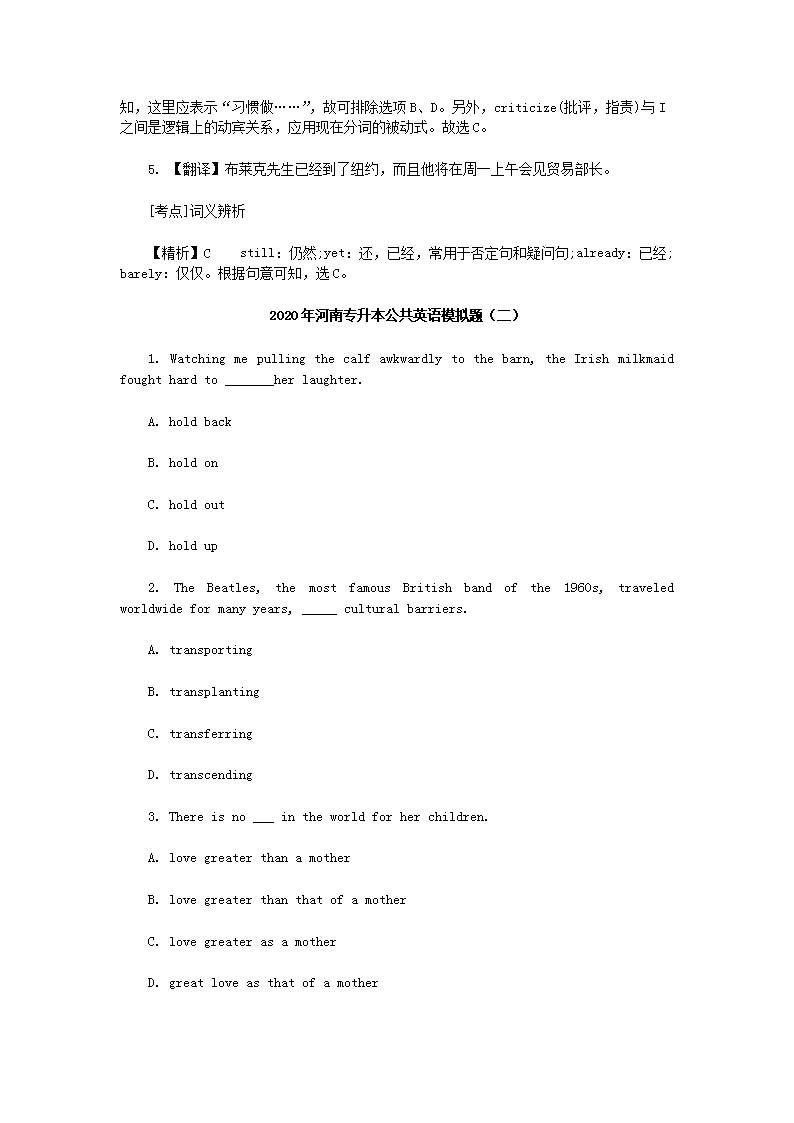 【文档名称】 2020年河南专升本公共英语模拟题三套(Word版).doc