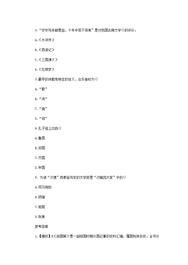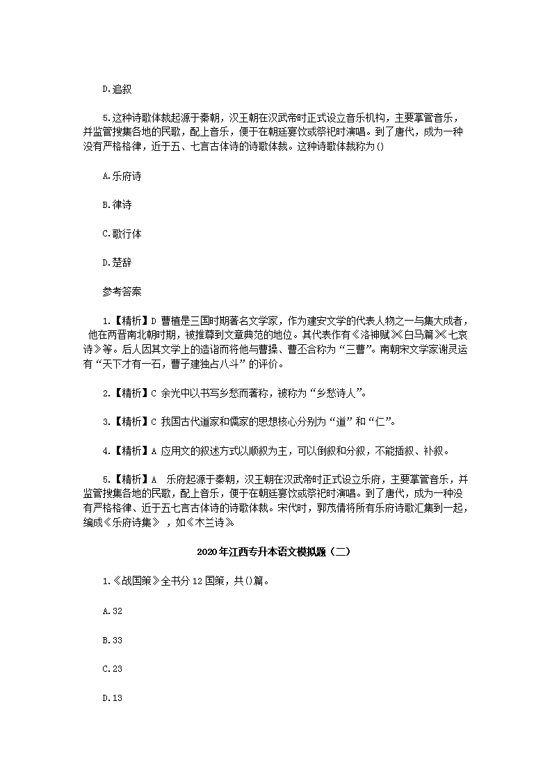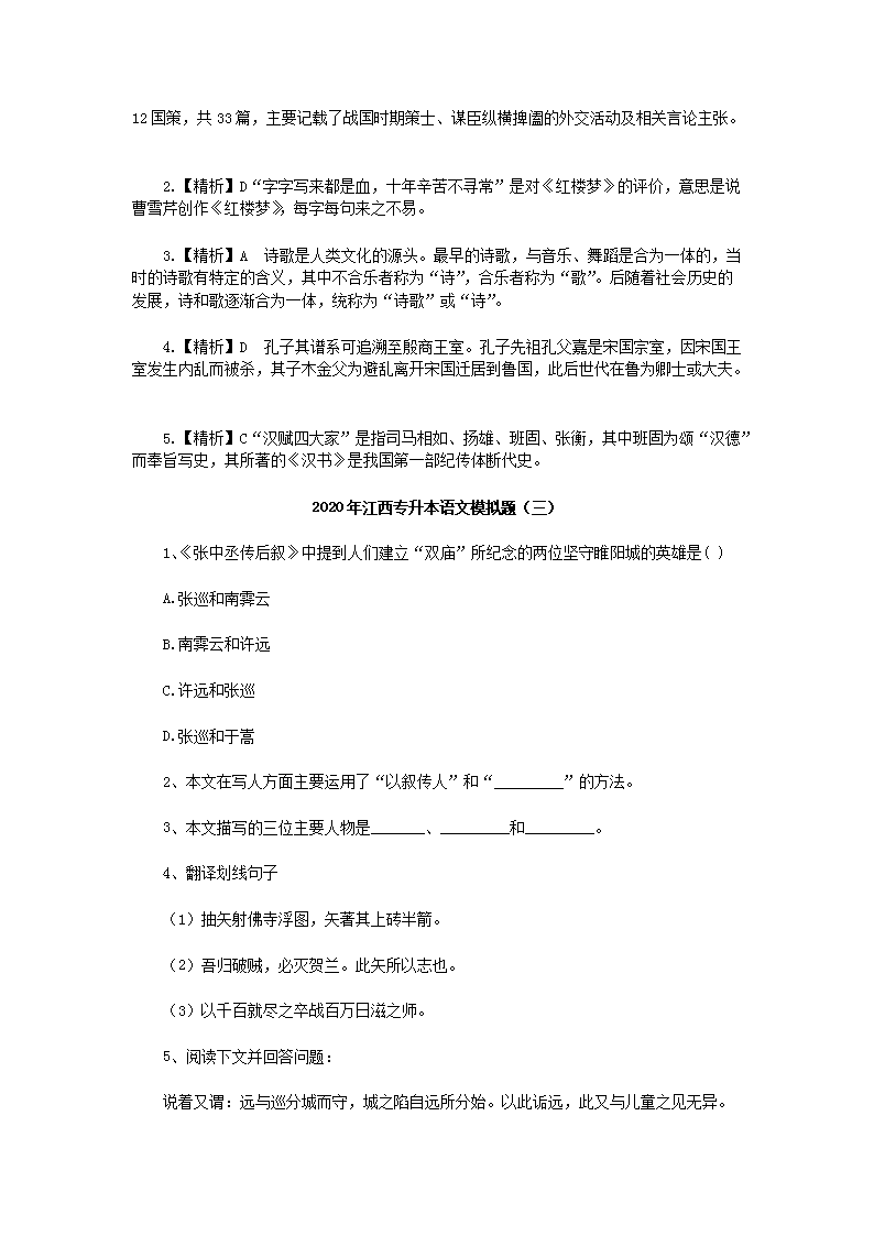 【文档名称】 2020年江西专升本语文模拟题三套(Word版).doc