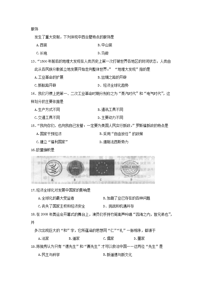 【文档预览】 无忧考网整理发布2010年新疆普通高中会考历史考试真题(Word版),前五页预览如下: