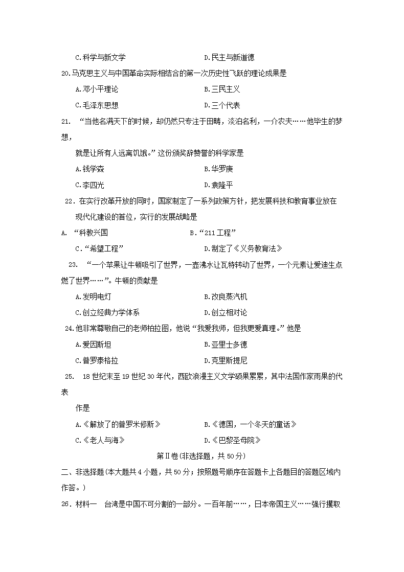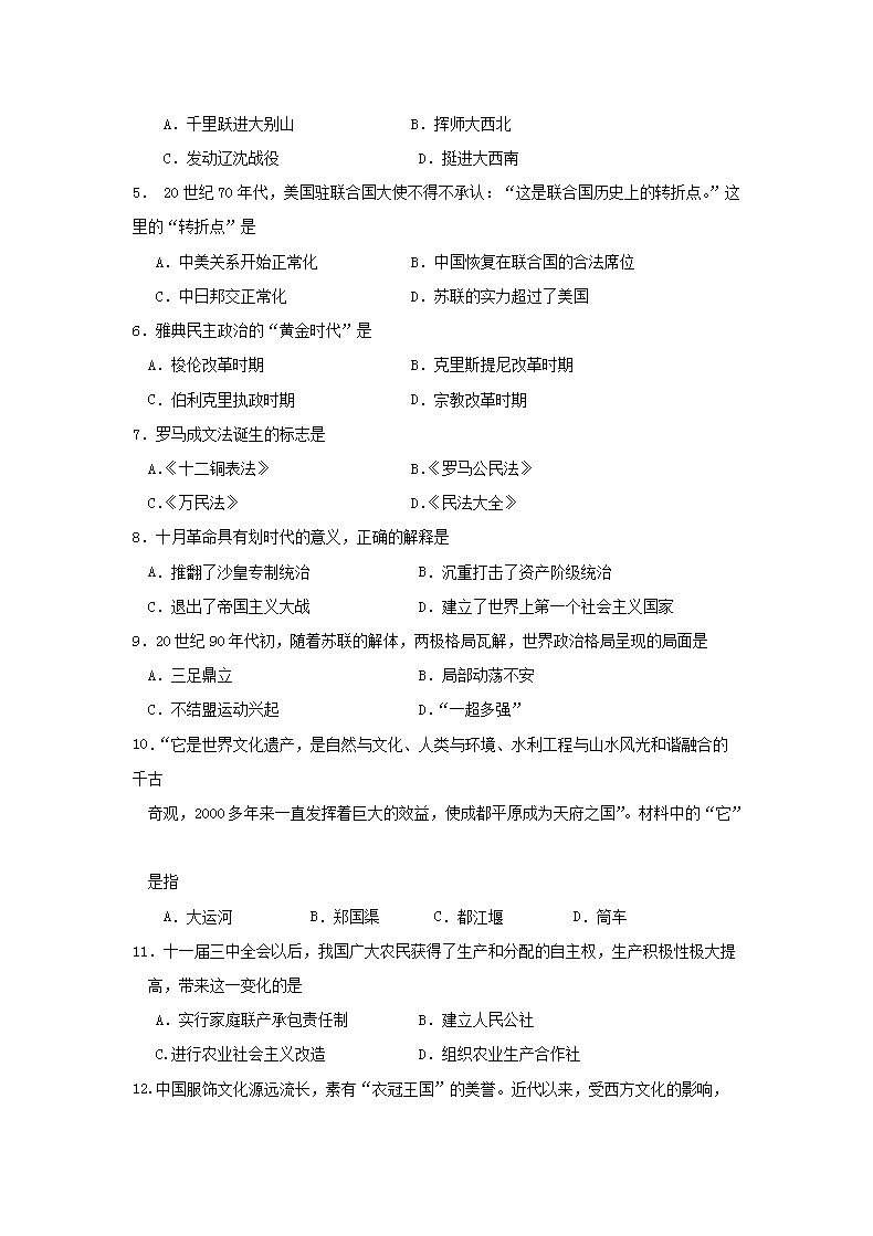 【文档名称】 2010年新疆普通高中会考历史考试真题(Word版).doc