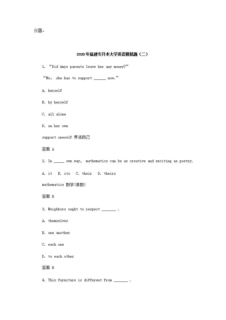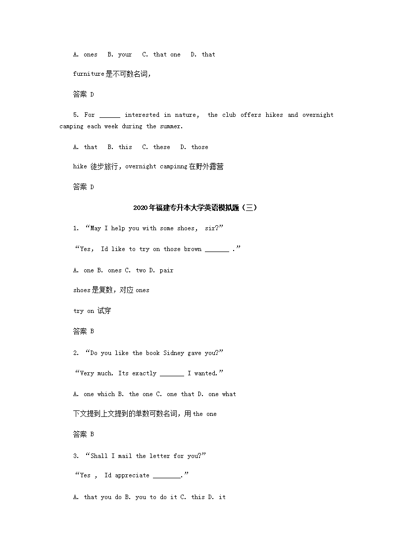 【文档预览】 无忧考网整理发布2020年福建专升本大学英语模拟题三套(Word版),前五页预览如下:
