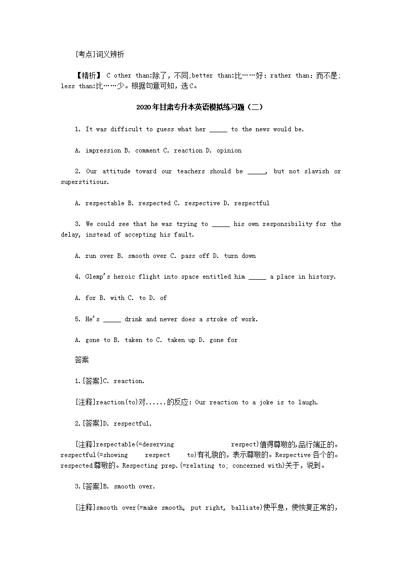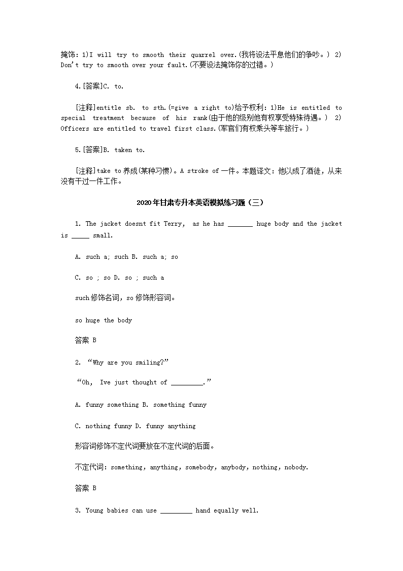 【文档名称】 2020年甘肃专升本英语模拟练习题三套(Word版).doc