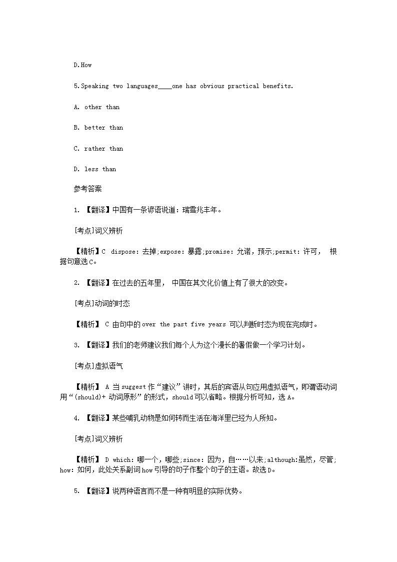 【文档预览】 无忧考网整理发布2020年甘肃专升本英语模拟练习题三套(Word版),前五页预览如下: