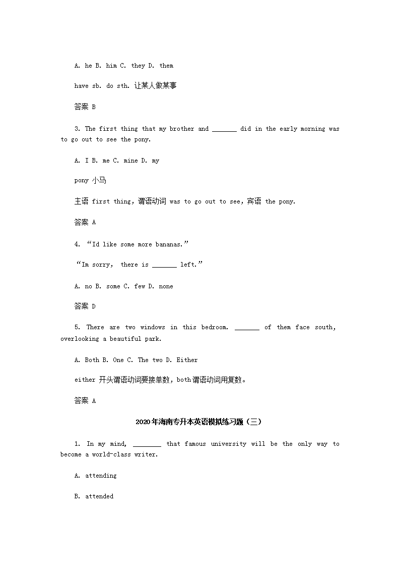 【文档名称】 2020年海南专升本英语模拟练习题三套(Word版).doc