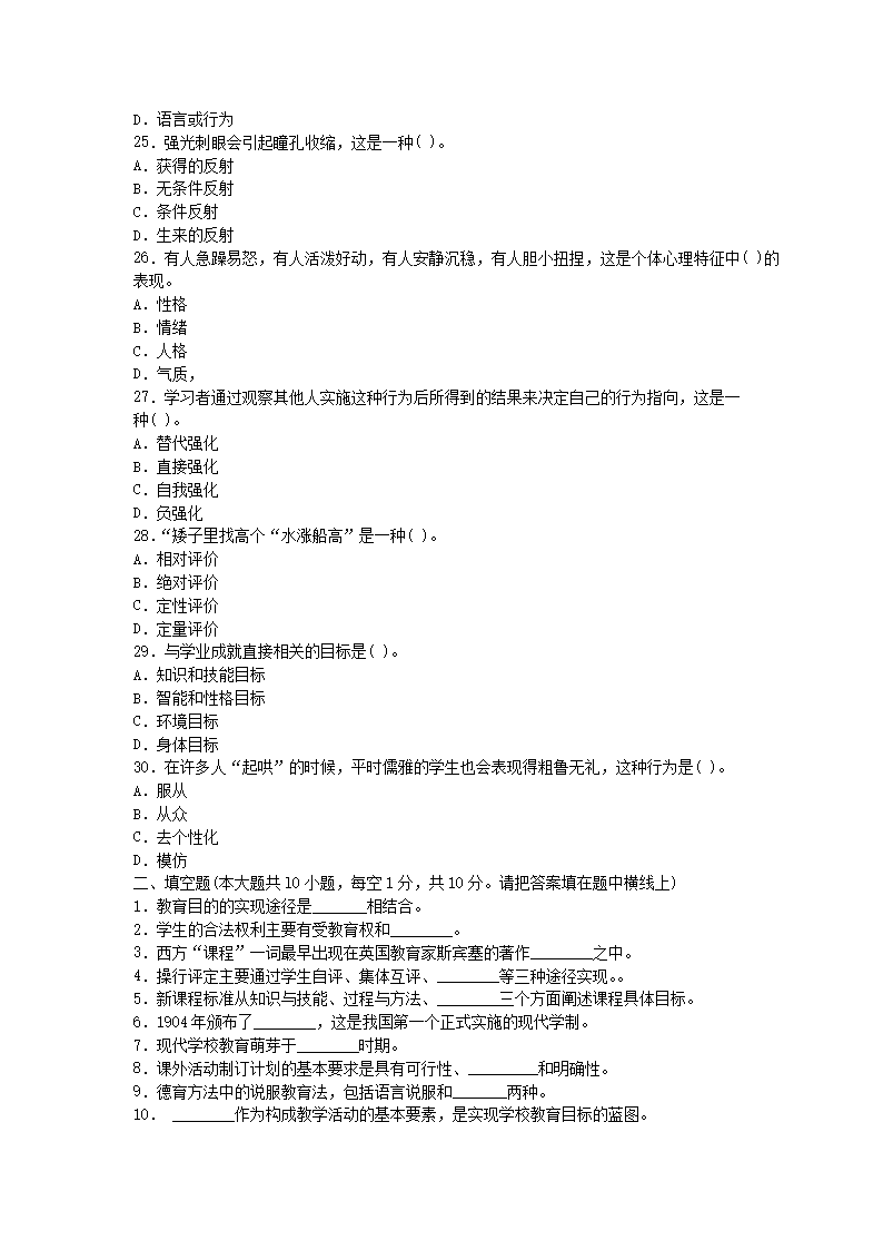 【文档名称】 2021浙江教师招聘考试中学理论综合知识模拟题及答案三套(Word版).doc