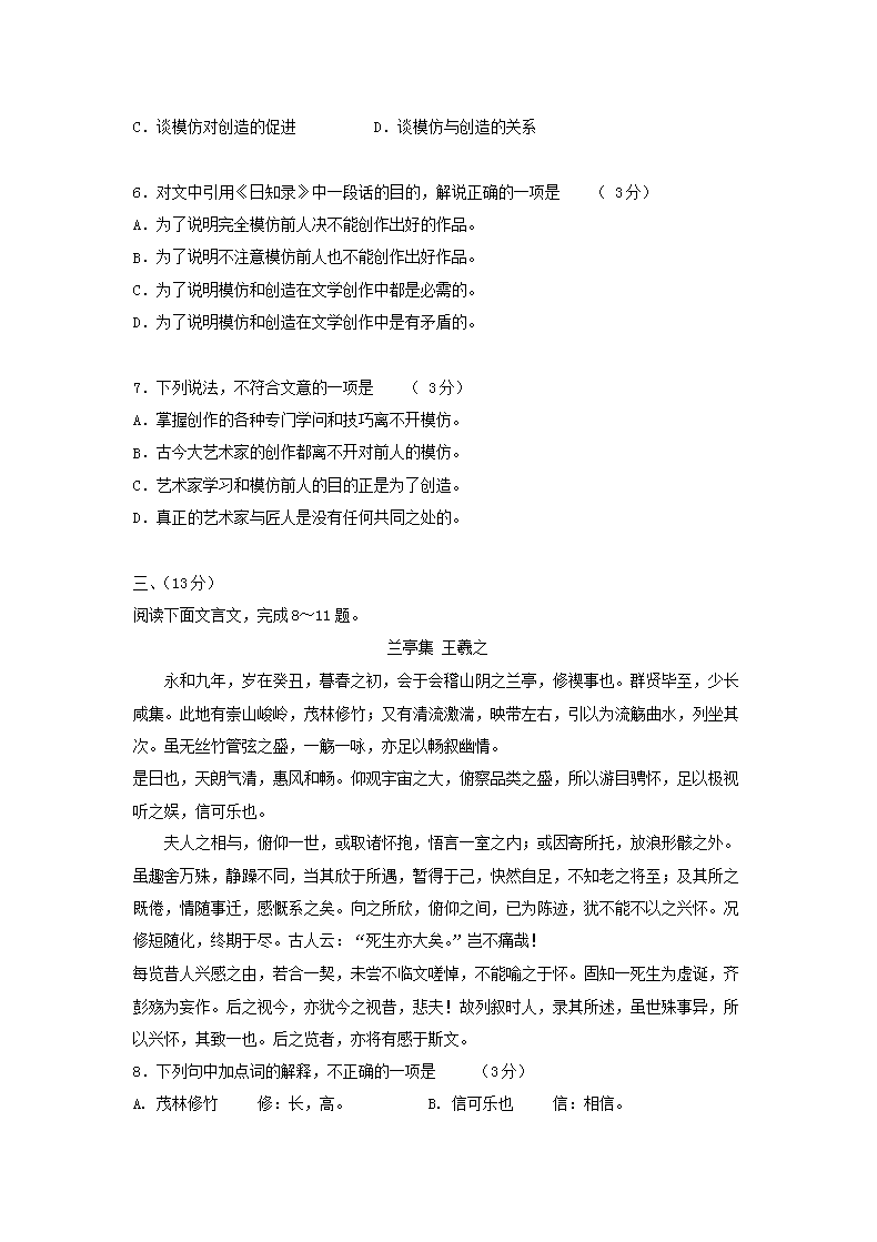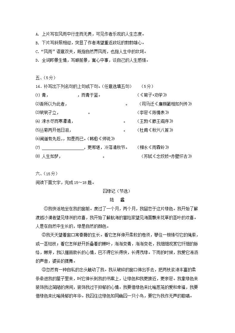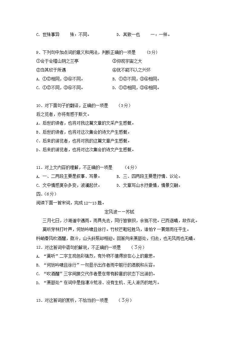 【文档名称】 2009年安徽普通高中会考语文考试真题(Word版).doc