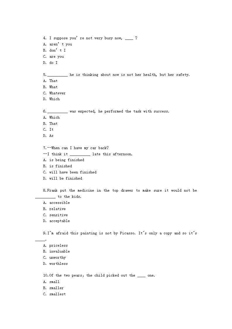 【文档名称】 2020年四川专升本大学英语练习题三套(Word版).doc
