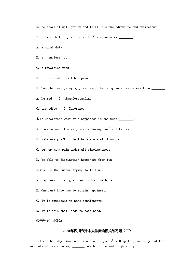 【文档名称】 2020年四川专升本大学英语模拟练习题三套(Word版).doc