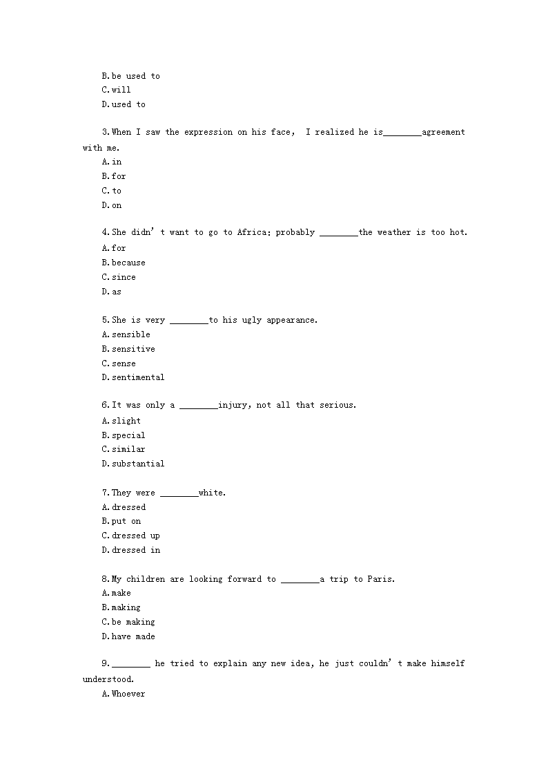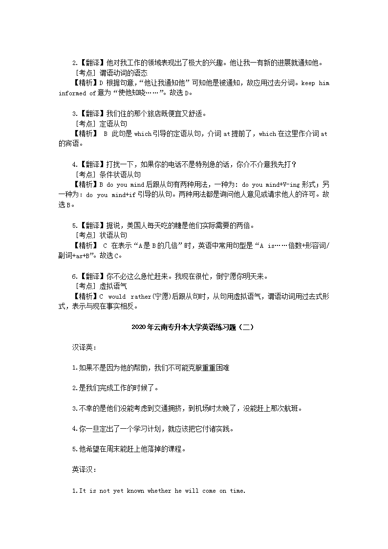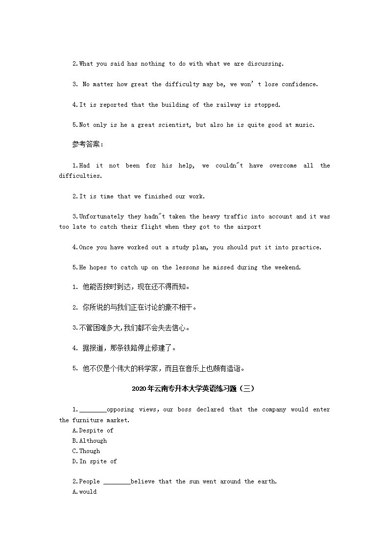 【文档预览】 无忧考网整理发布2020年云南专升本大学英语练习题三套(Word版),前五页预览如下: