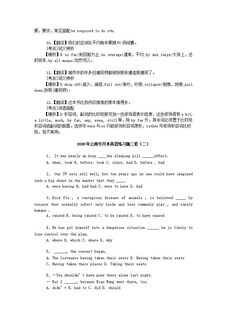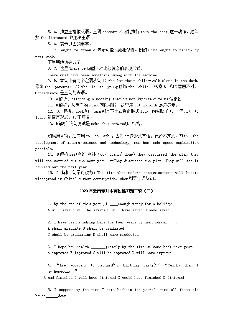 【文档名称】 2020年云南专升本英语模拟练习题三套(Word版).doc