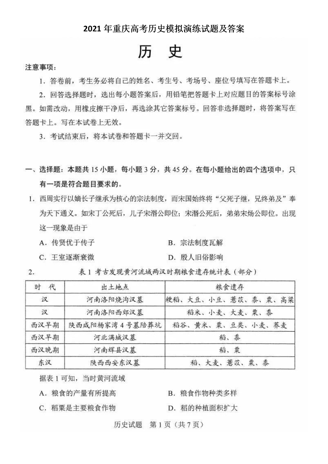 【文档预览】 无忧考网整理发布2021年重庆高考历史模拟演练试题及答案(Word版),前五页预览如下: