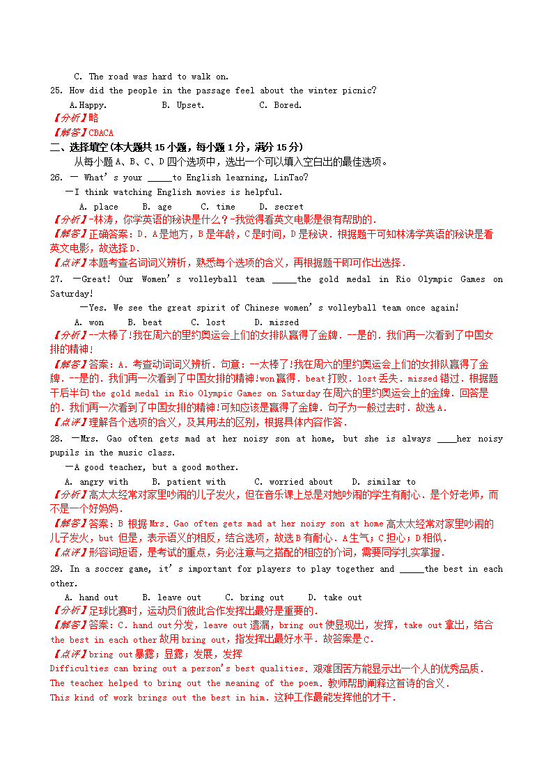 【文档名称】 2017年湖北省襄阳市中考英语真题及答案(Word版).doc