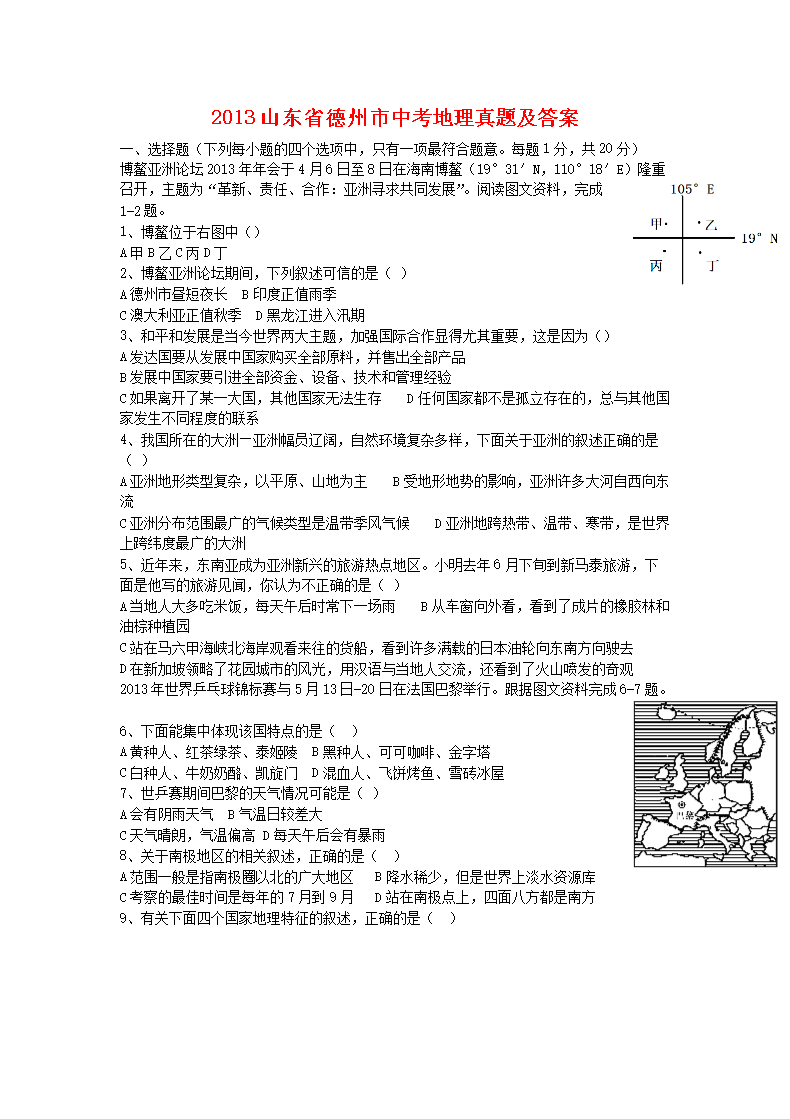 【文档名称】 2013山东省德州市中考地理真题及答案(Word版).doc