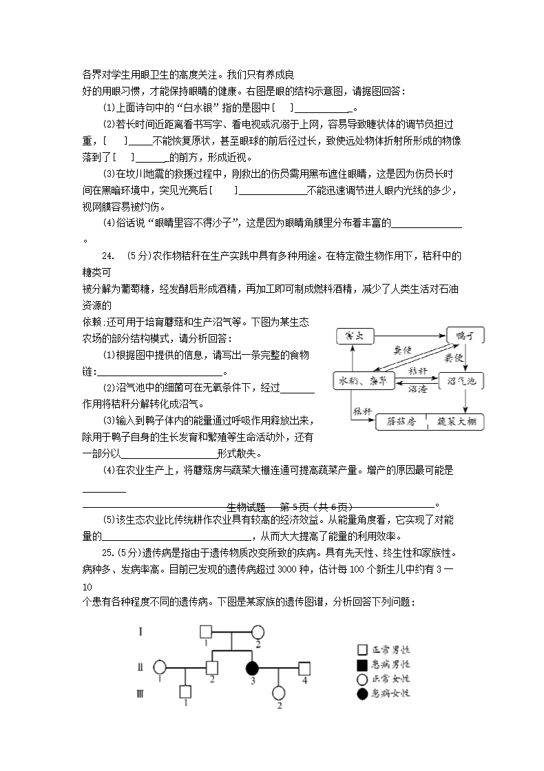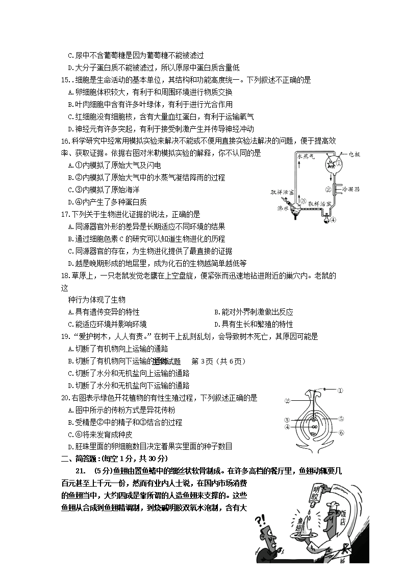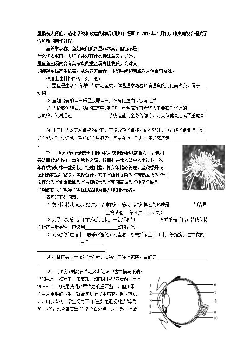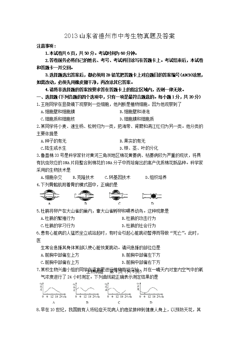 【文档名称】 2013山东省德州市中考生物真题及答案(Word版).doc