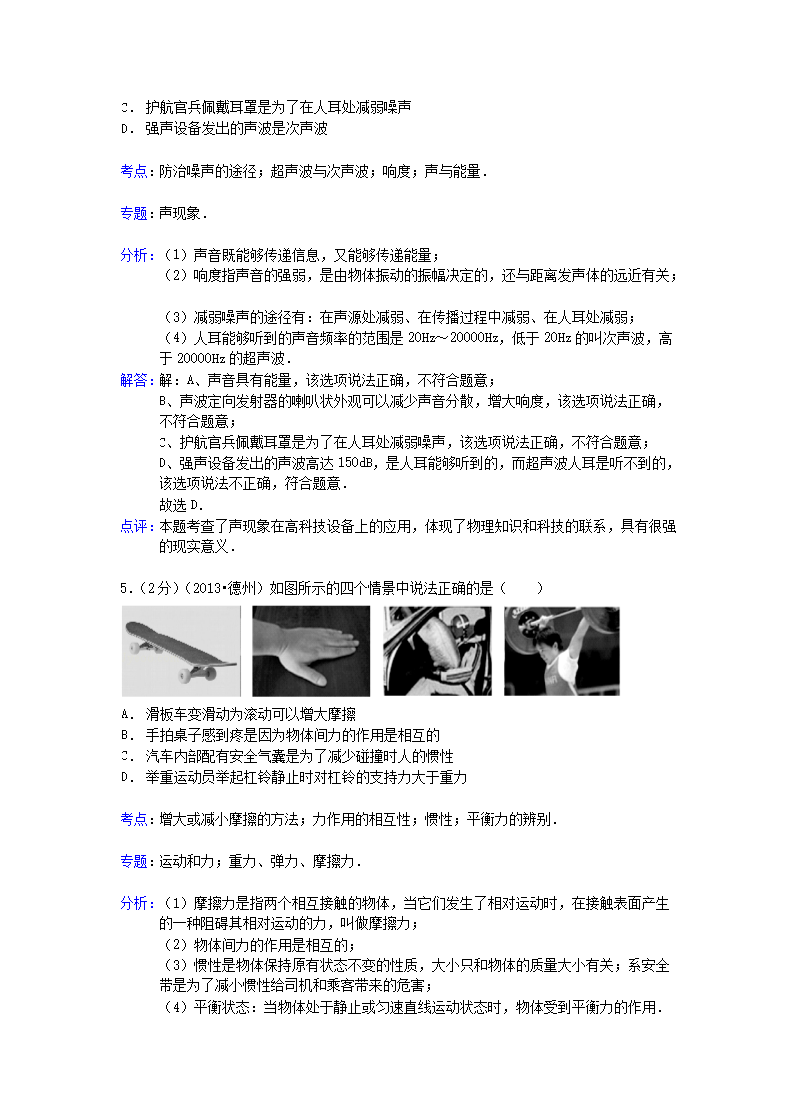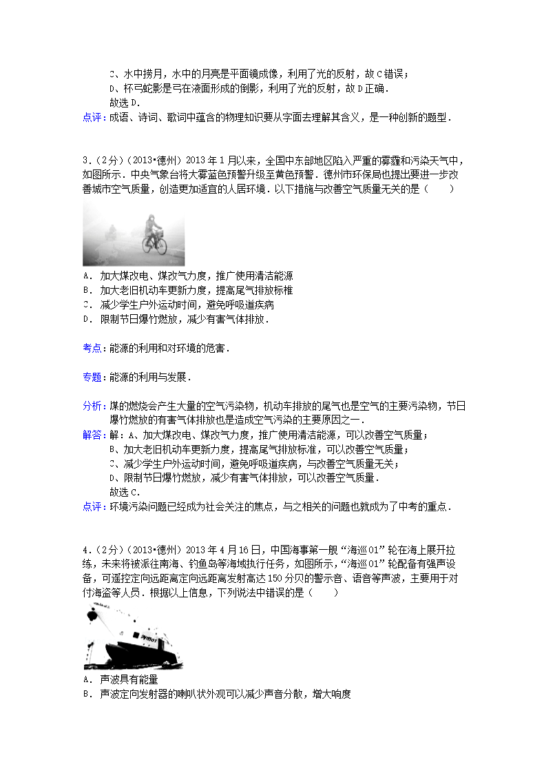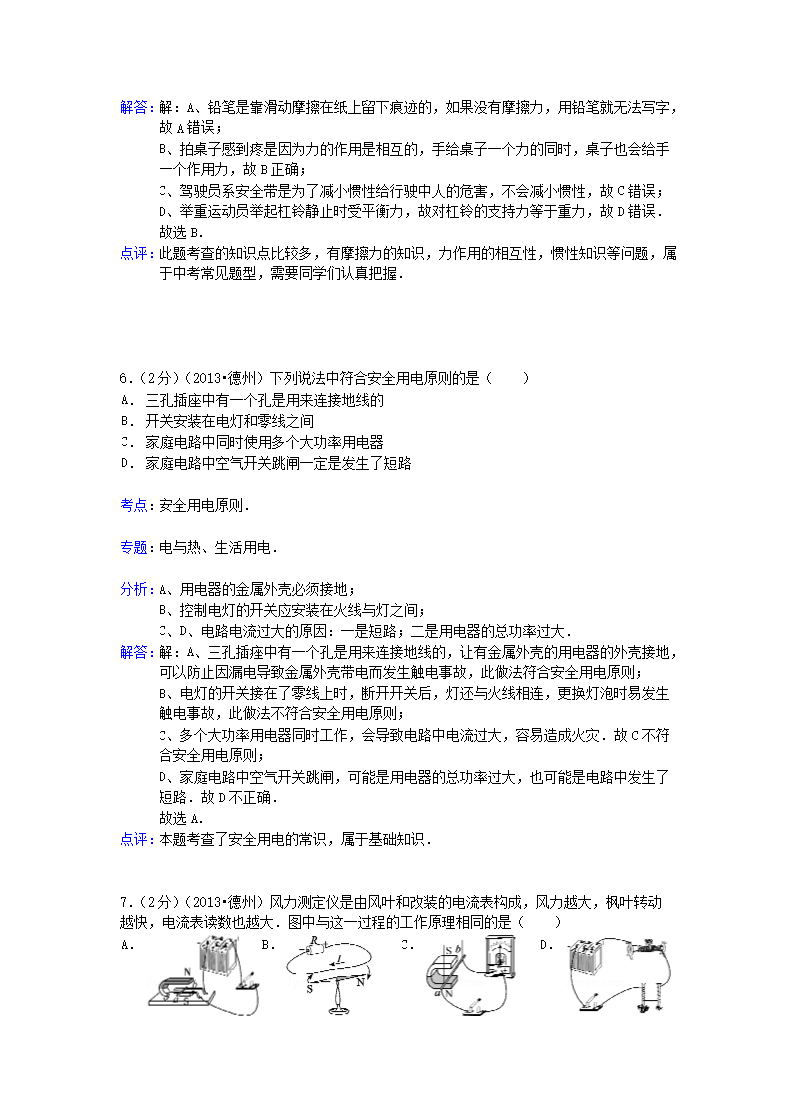 【文档名称】 2013山东省德州市中考物理真题及答案(Word版).doc