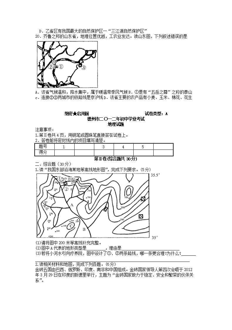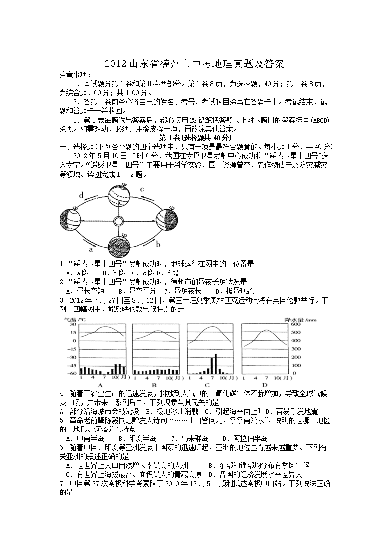 【文档名称】 2012山东省德州市中考地理真题及答案(Word版).doc