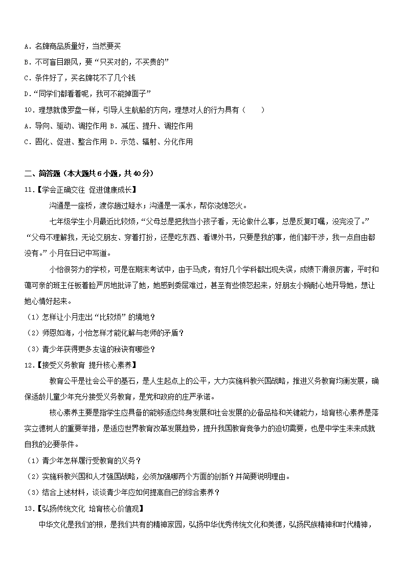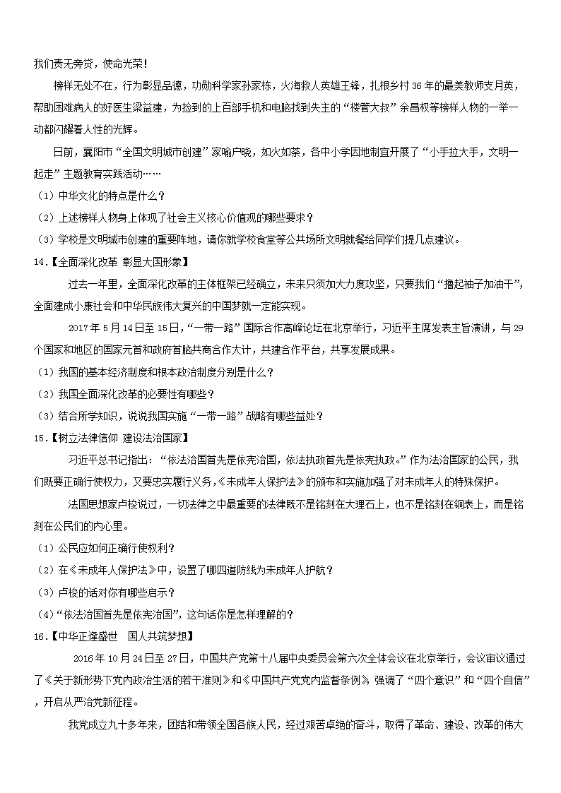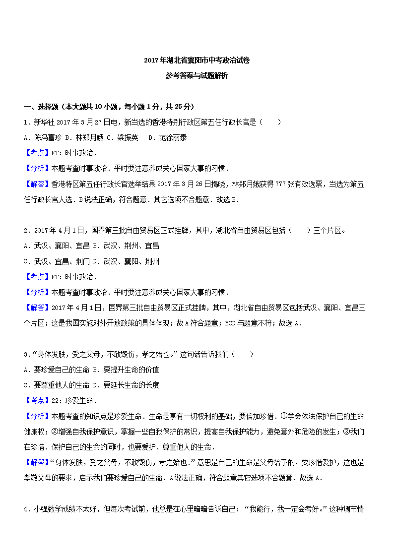 【文档名称】 2017年湖北省襄阳市中考思想品德真题及答案(Word版).doc
