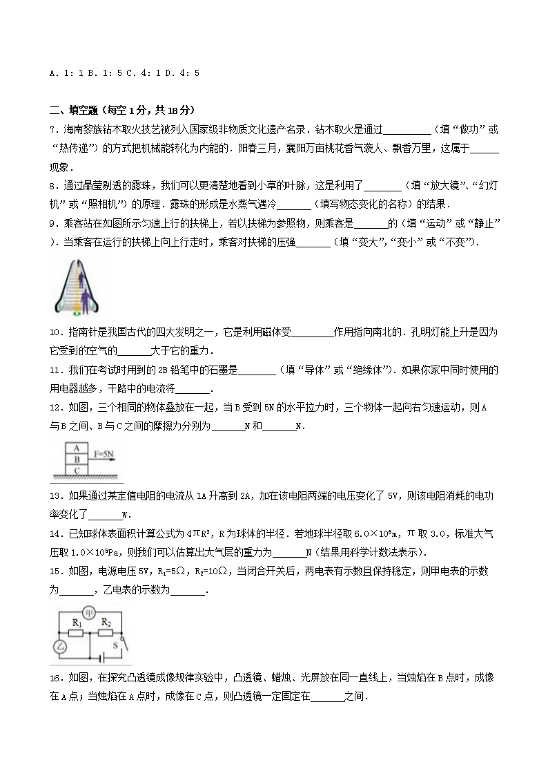 【文档名称】 2017年湖北省襄阳市中考物理真题及答案(Word版).doc
