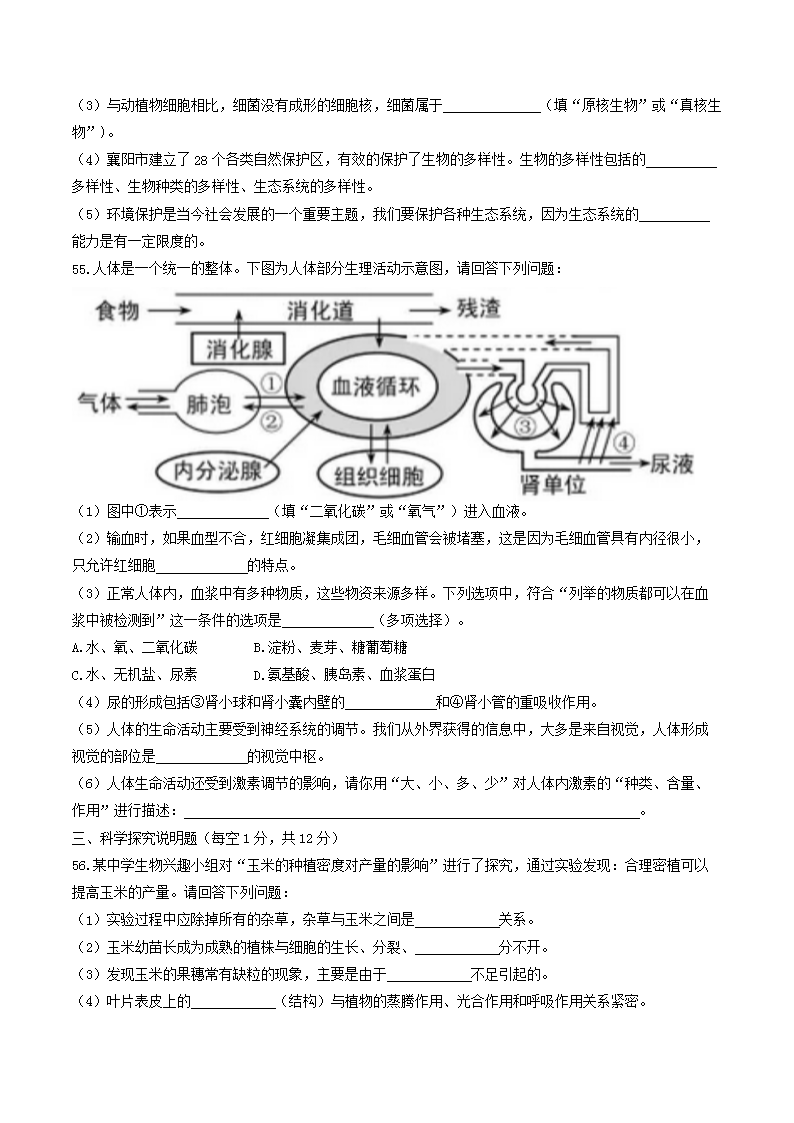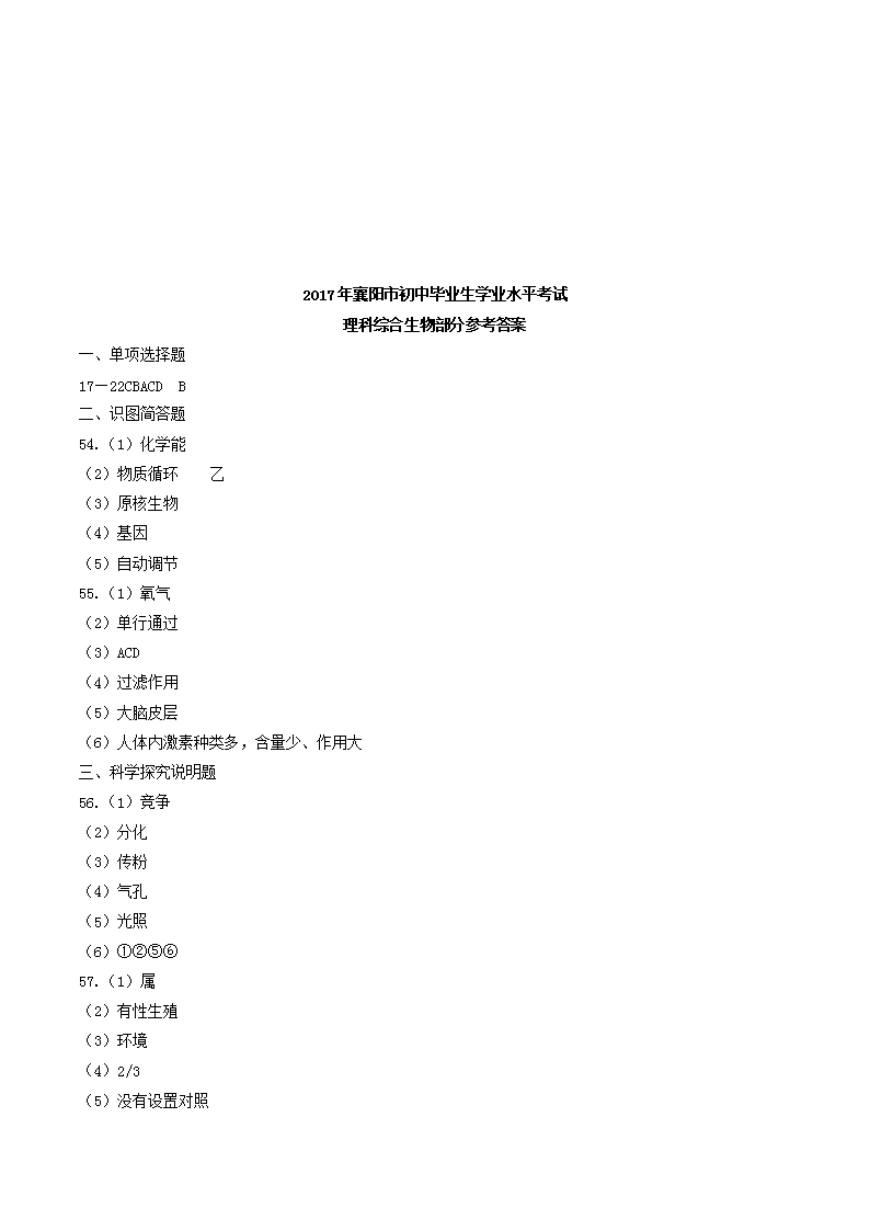 【文档名称】 2017年湖北省襄阳市中考生物真题及答案(Word版).doc
