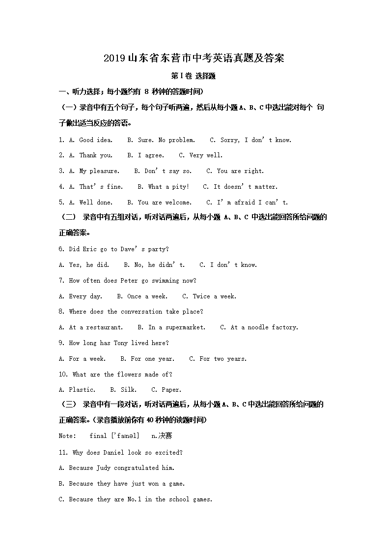 【文档名称】 2019山东省东营市中考英语真题及答案(Word版).doc
