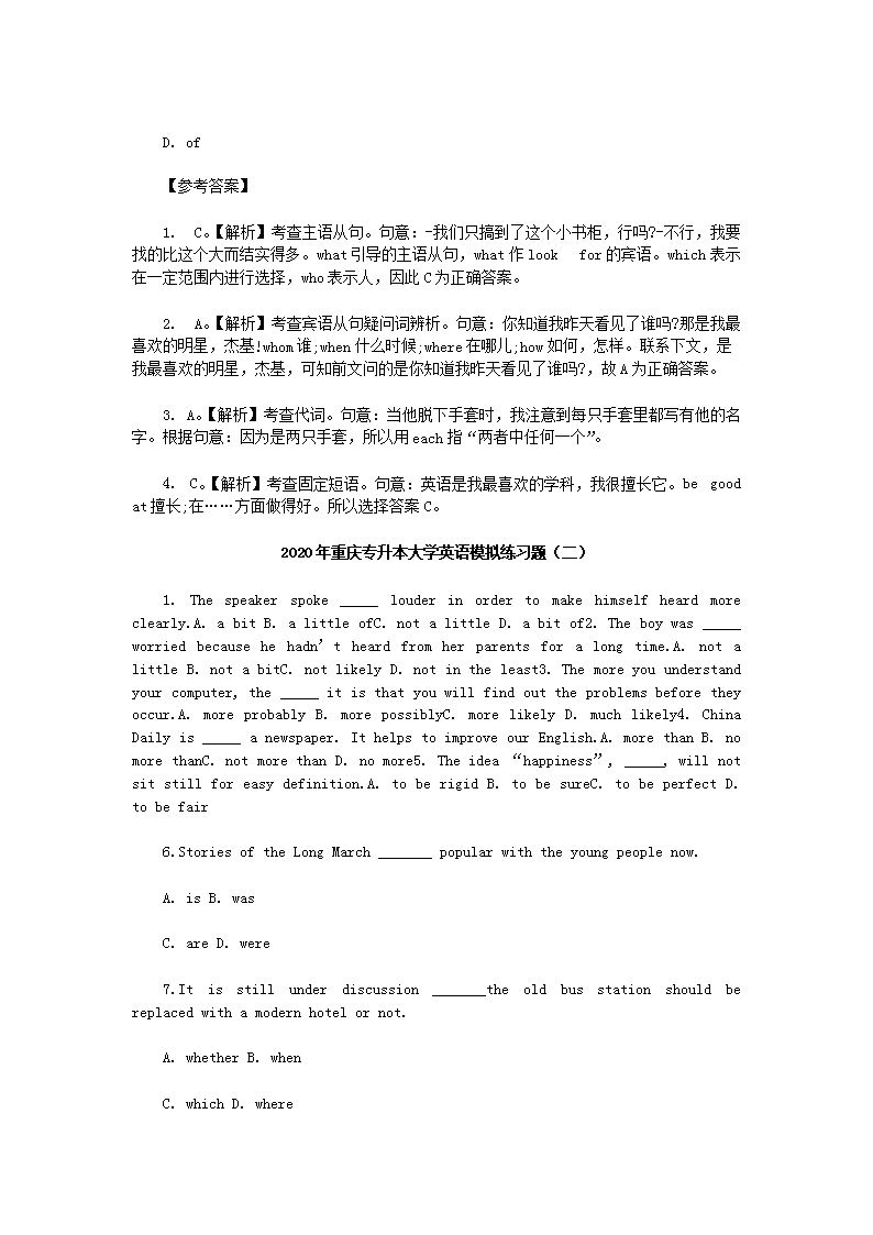 【文档预览】 无忧考网整理发布2020年重庆专升本大学英语模拟练习题三套(Word版),前五页预览如下: