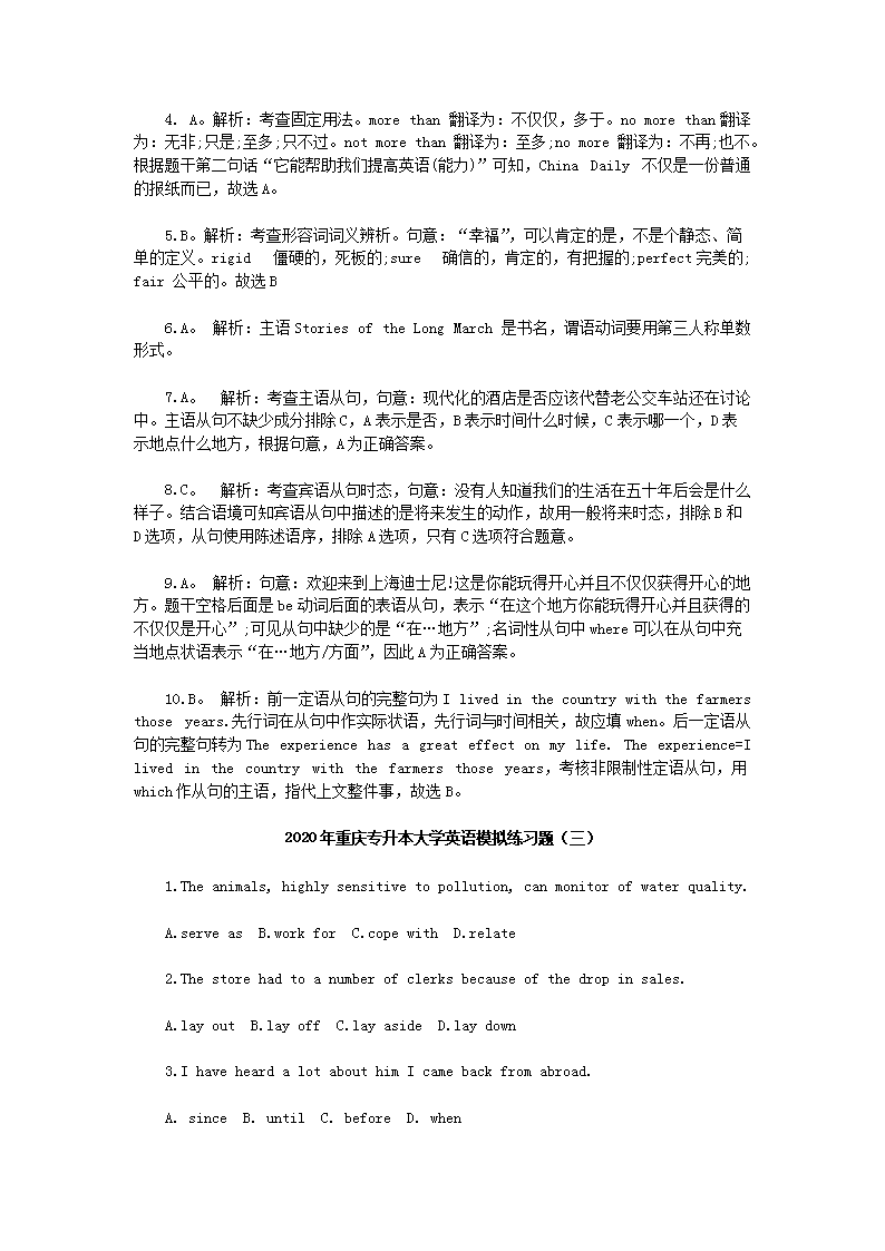 【文档名称】 2020年重庆专升本大学英语模拟练习题三套(Word版).doc