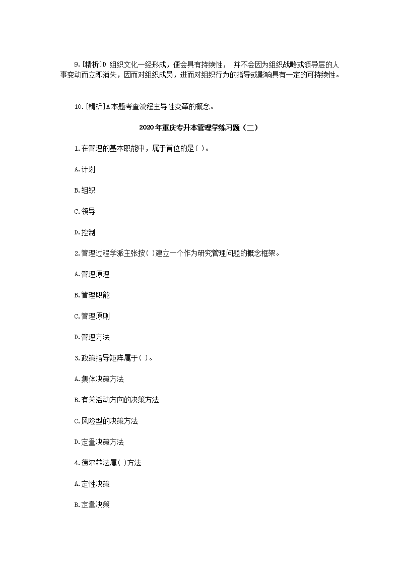 【文档名称】 2020年重庆专升本管理学练习题三套(Word版).doc