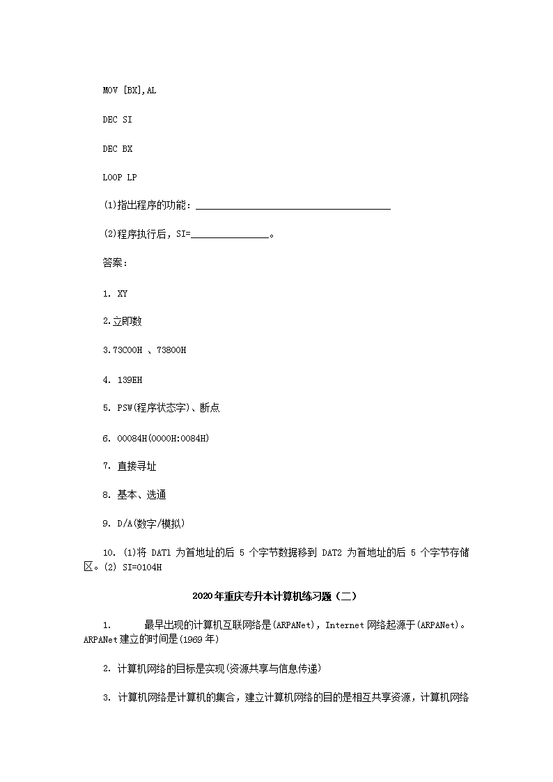 【文档名称】 2020年重庆专升本计算机练习题三套(Word版).doc