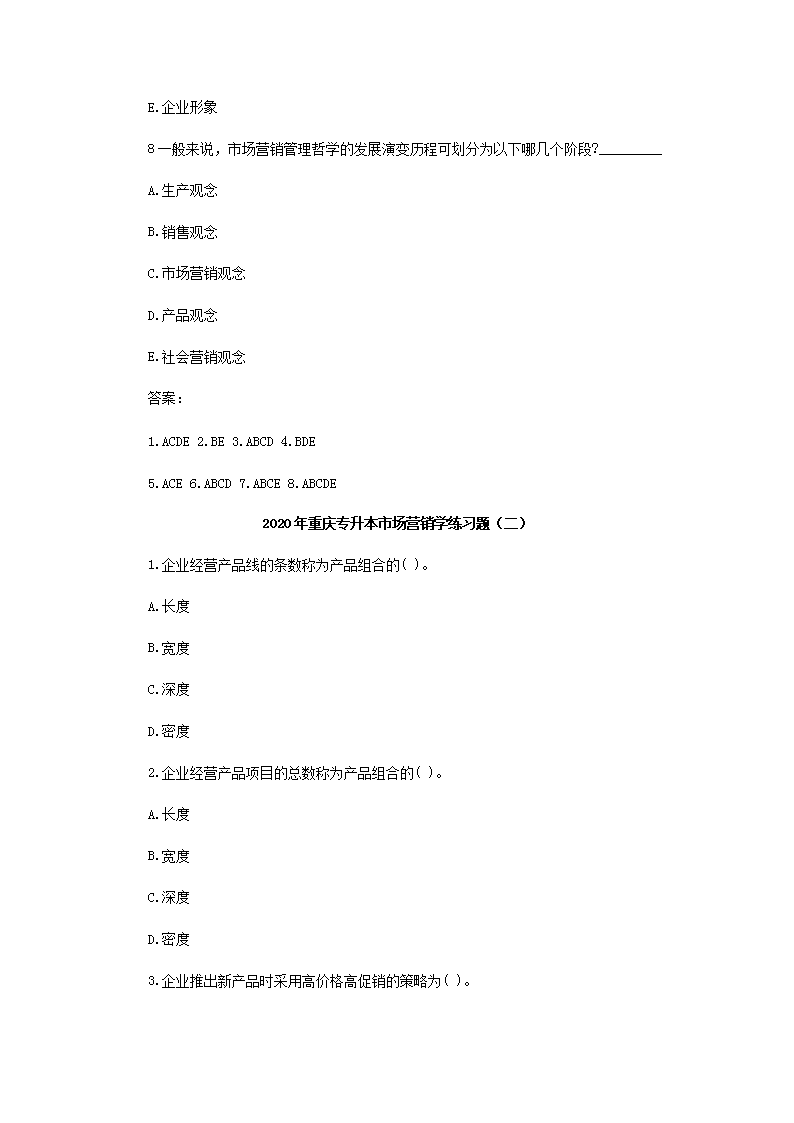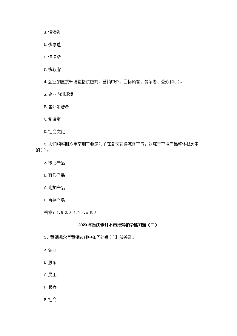 【文档名称】 2020年重庆专升本市场营销学练习题三套(Word版).doc