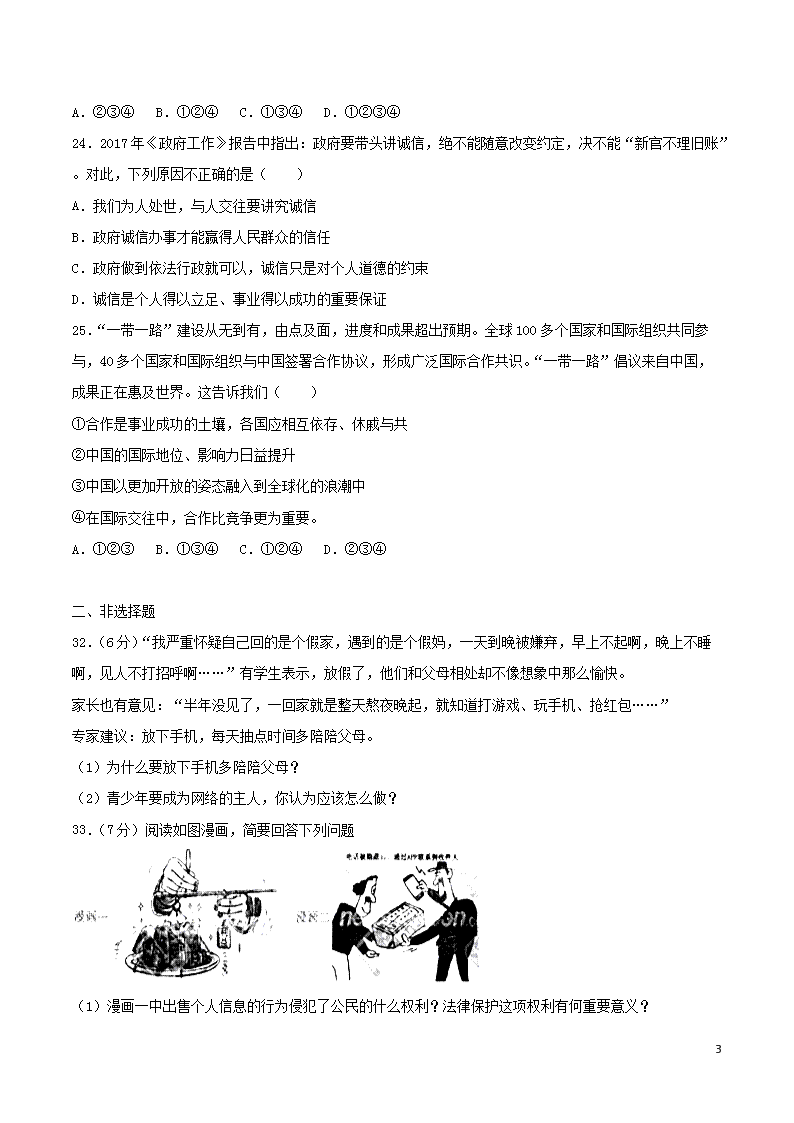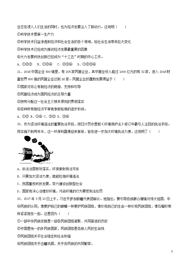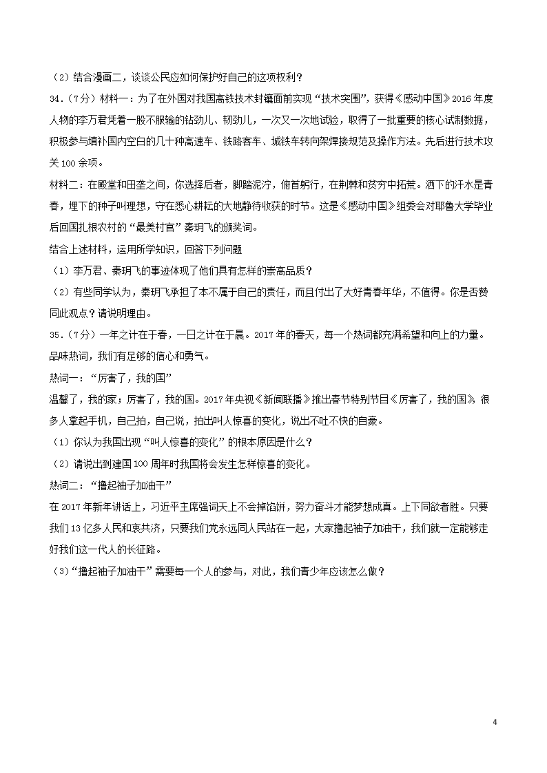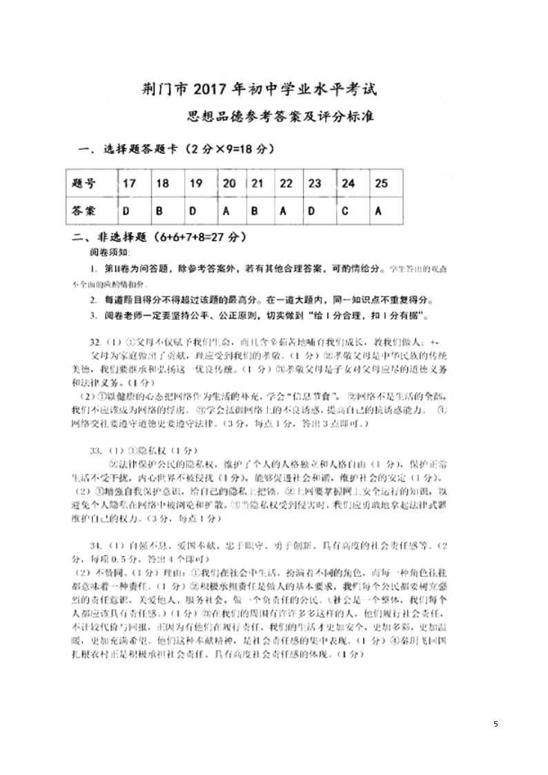 【文档名称】 2017年湖北省荆门市中考政治真题及答案(Word版).doc