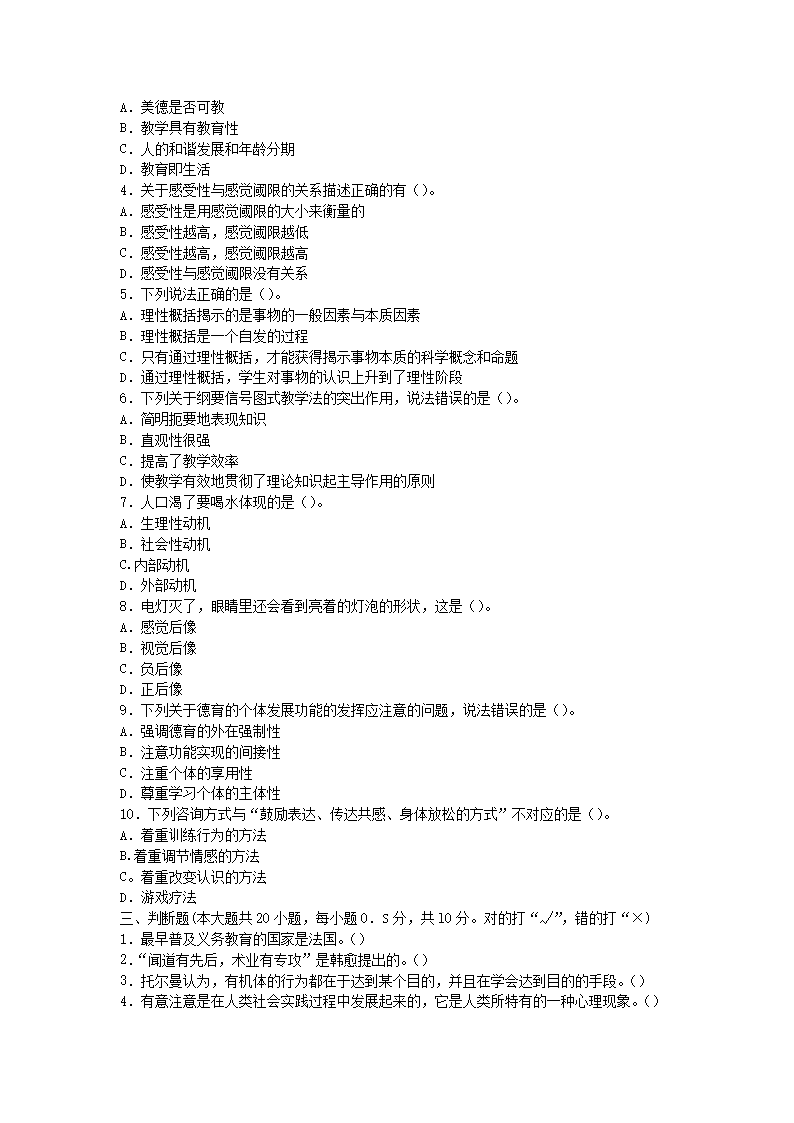 【文档名称】 2021浙江教师招聘考试小学教育综合知识练习题及答案三套(Word版).doc