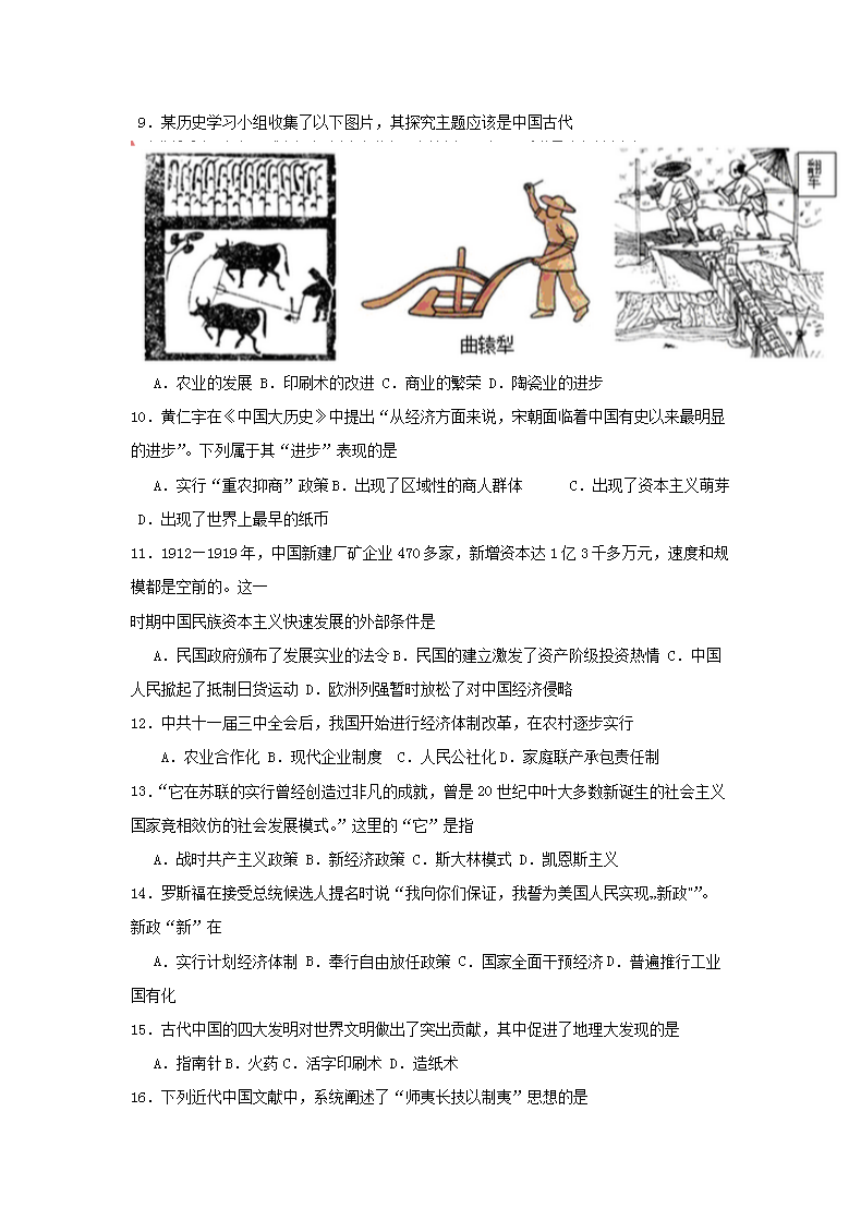 【文档名称】 2016年山东普通高中会考历史真题及答案(Word版).doc