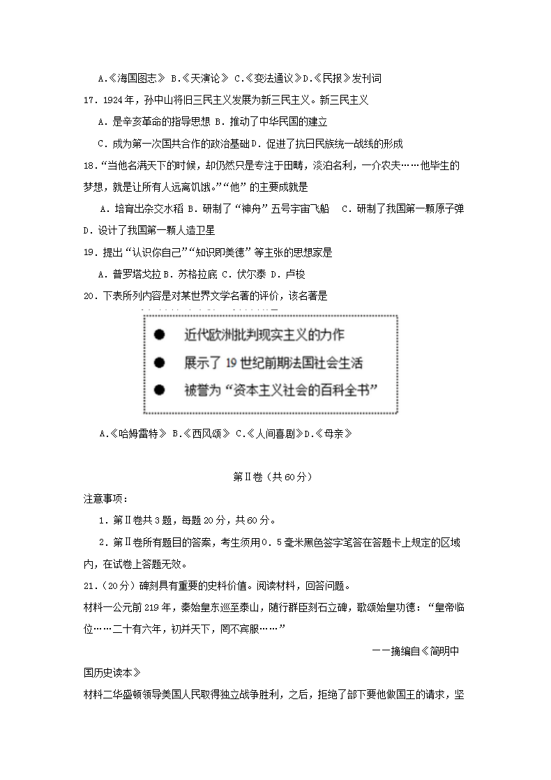 【文档预览】 无忧考网整理发布2016年山东普通高中会考历史真题及答案(Word版),前五页预览如下: