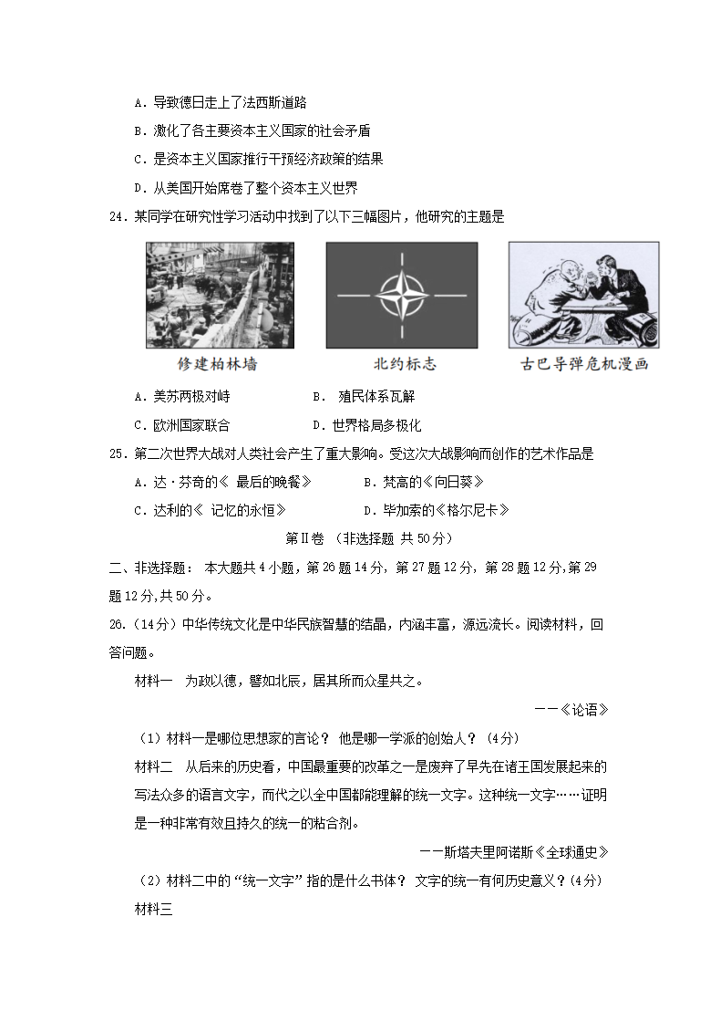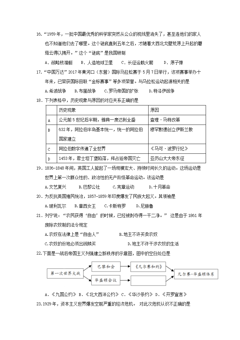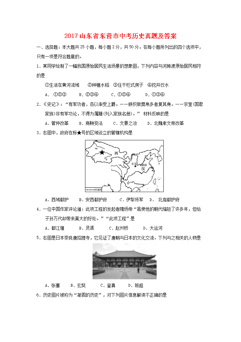 【文档名称】 2017山东省东营市中考历史真题及答案(Word版).doc