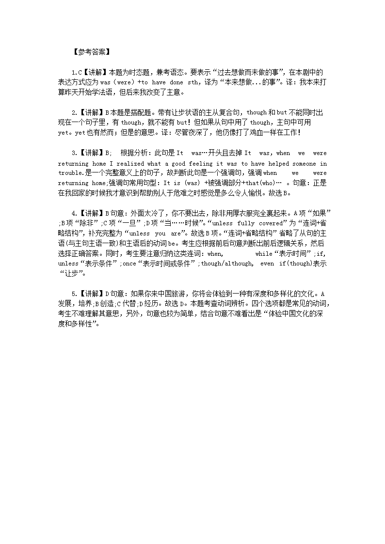 【文档名称】 2020年青海专升本大学英语模拟题三套(Word版).doc