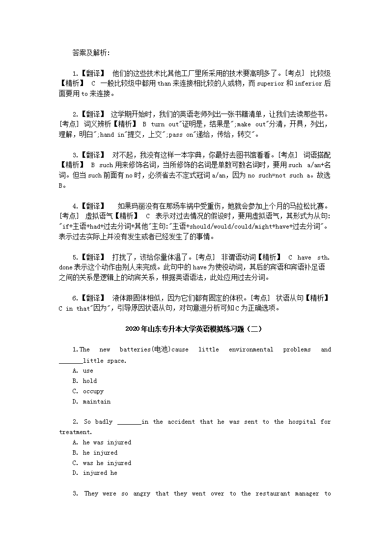 【文档预览】 无忧考网整理发布2020年山东专升本大学英语模拟练习题三套(Word版),前五页预览如下: