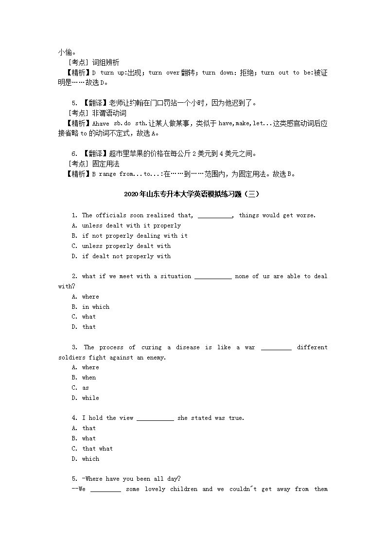 【文档名称】 2020年山东专升本大学英语模拟练习题三套(Word版).doc