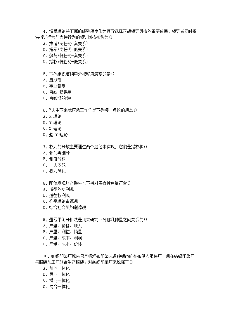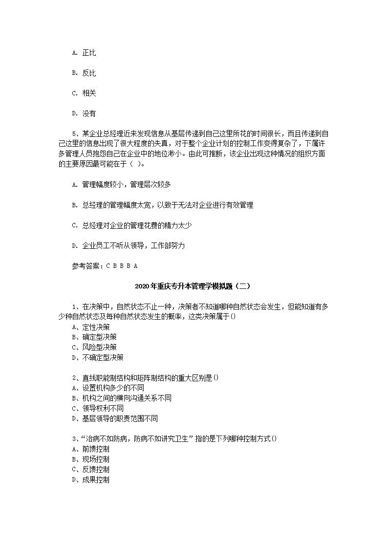 【文档名称】 2020年重庆专升本管理学模拟题三套(Word版).doc