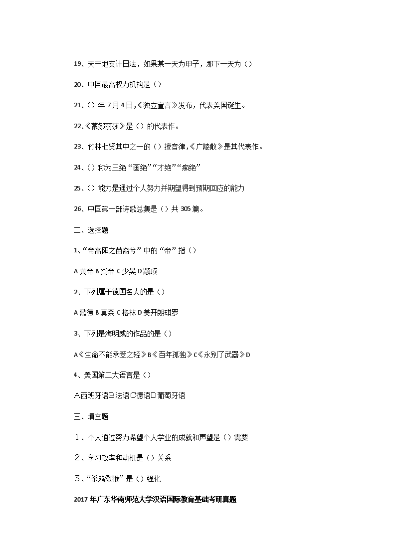 【文档名称】 2015一2017年广东华南师范大学汉语国际教育基础考研真题(Word版).doc